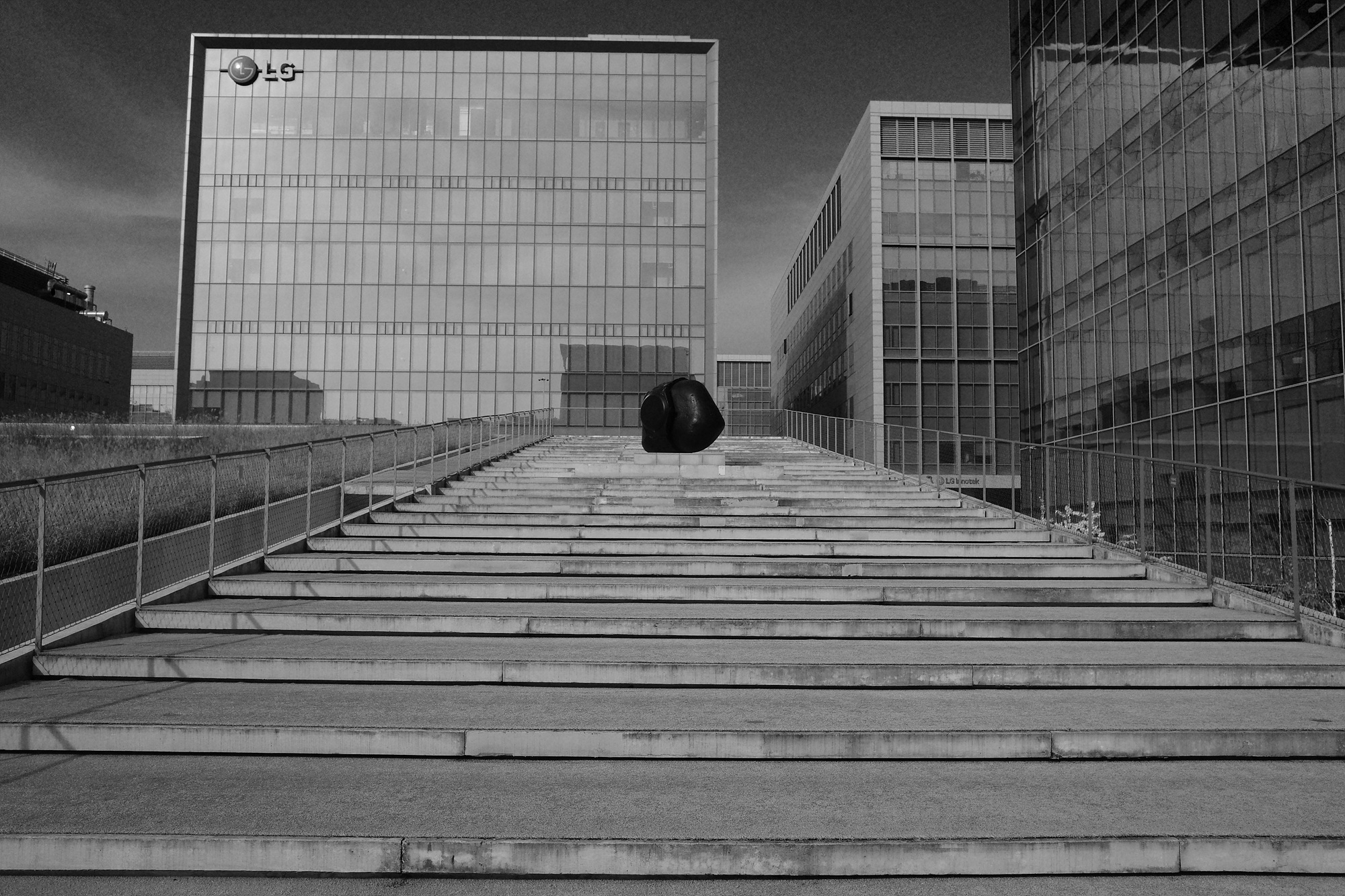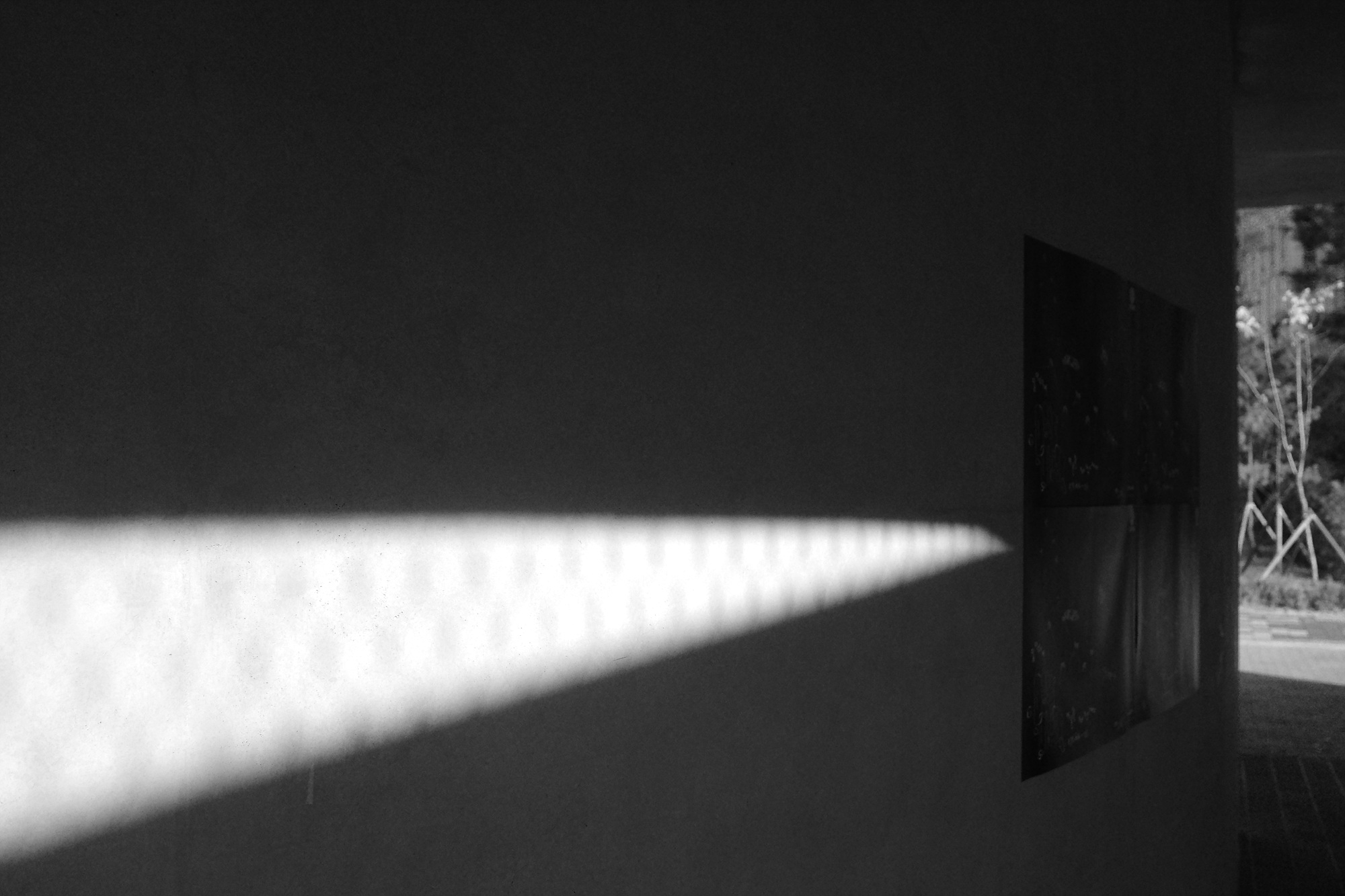 옥상정원으로 가는 길목을 촬영할 때 가장 많이 느꼈던 점은 하드 모노로 찍길 잘했다는 것이다. 실제로 이 길목은 연회색 건물 특유의 차가움과 딱딱함이 흐르는 곳이었고, 빛 한 줄기가 유일하게 유연하다고 생각했다. 하지만 카메라를 들자 하드 모노는 높은 대비로 이 길목을 멋스럽게, 흑백만이 줄 수 있는 감성으로 차가움을 상쇄시켰다. 무엇보다 어두운 부분과 밝은 부분의 대비가 확실한데, 빛과 만나니 더 극적인 사진을 촬영할 수 있었고 찍고자 하는 대상에 깊이 집중할 수 있었다.