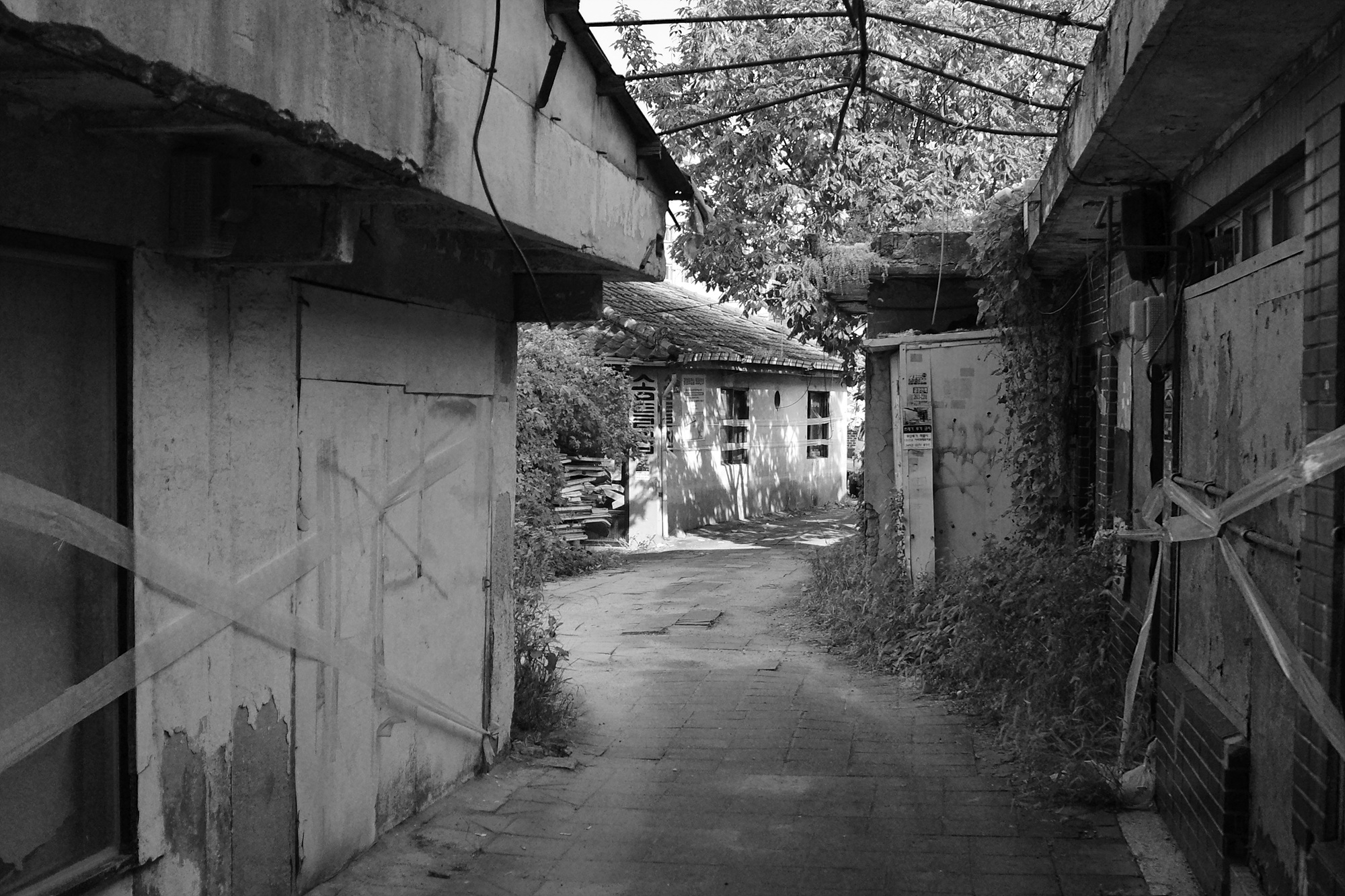 공항시장은 굳게 잠긴 자물쇠와 같은 곳이었고, 한편으론 손길 없이도 피어난 꽃과 자라난 풀이 있는 오묘한 곳이었다. 그 오묘함이 하드 모노의 부드러운 흑백 톤으로 담으니 조금 정제되는 듯했다. 장소와 하드 모노가 만든 이미지가 잘 맞아떨어지기도 했지만, 하이 콘트라스트 흑백의 강렬함은 깎아내고, 소프트 모노의 연함에 힘을 준 그 표현력이 이 사진들을 더 돋보이게 만들지 않았을까 싶다.