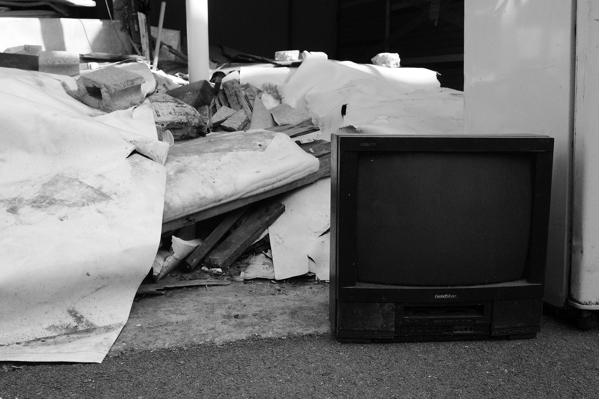 건물과 건물 틈새, 골목길로 추정되는 곳과 길가 군데군데 분해되지 못한 쓰레기와 질긴 생명력으로 자라난 풀들.