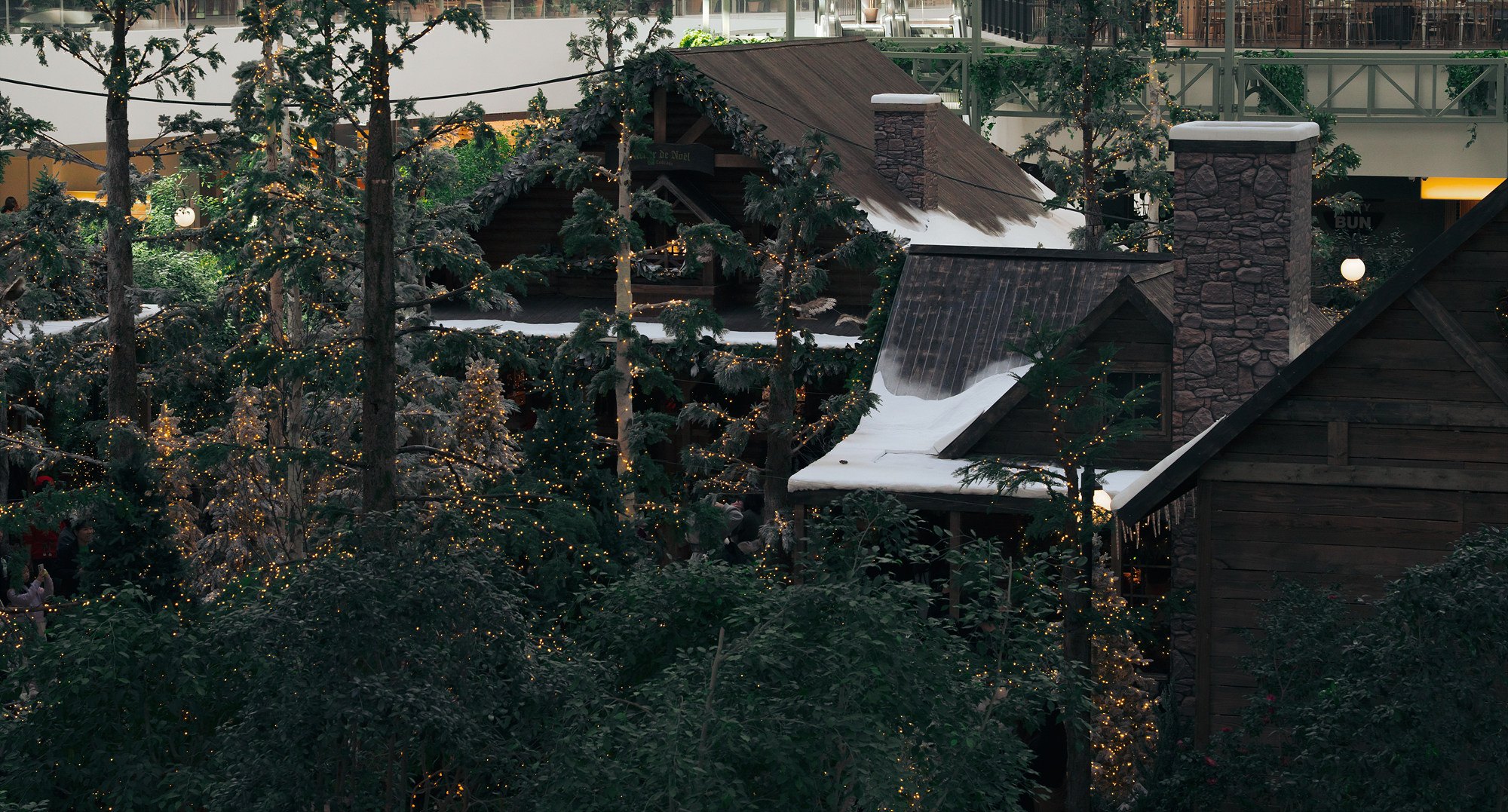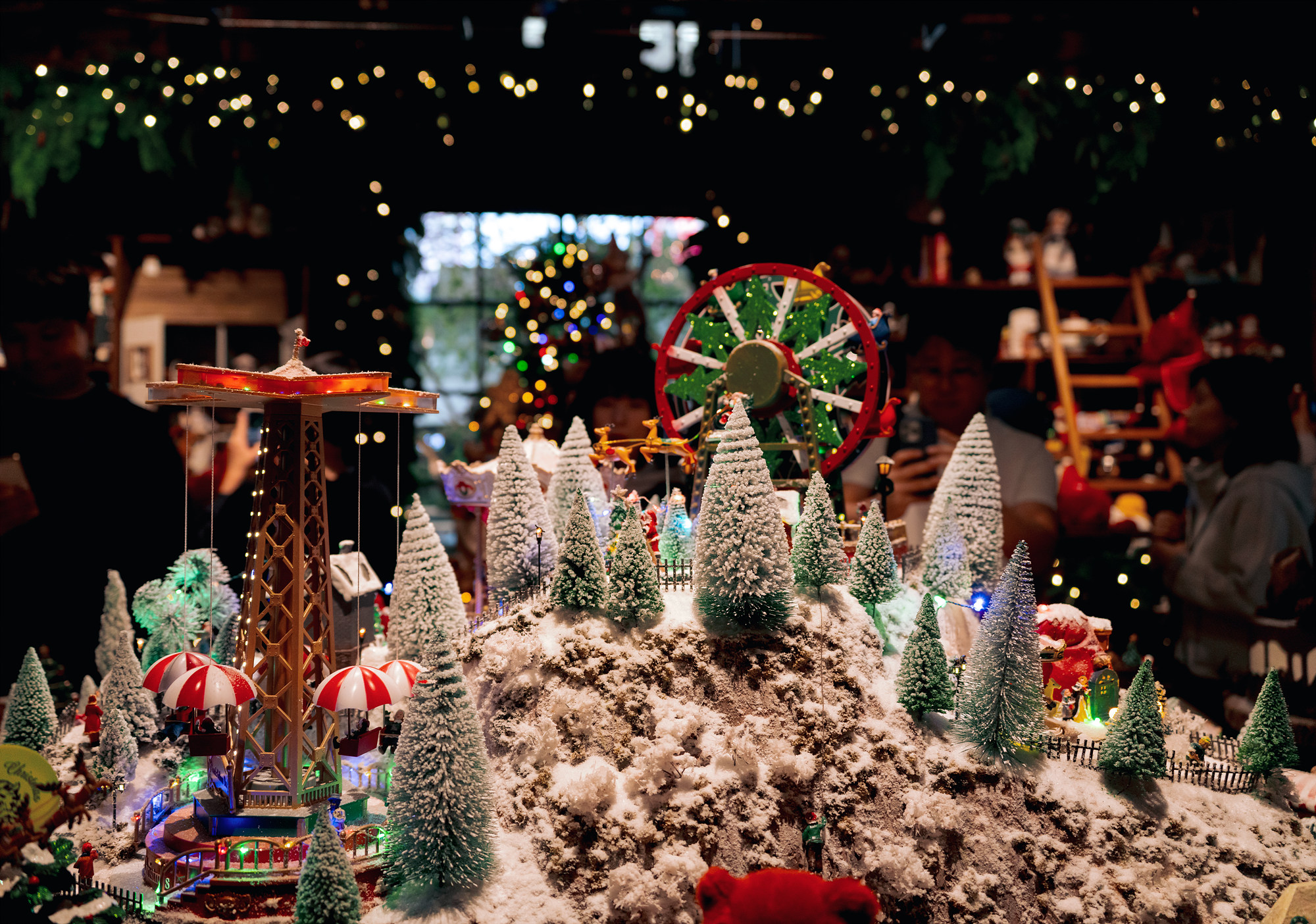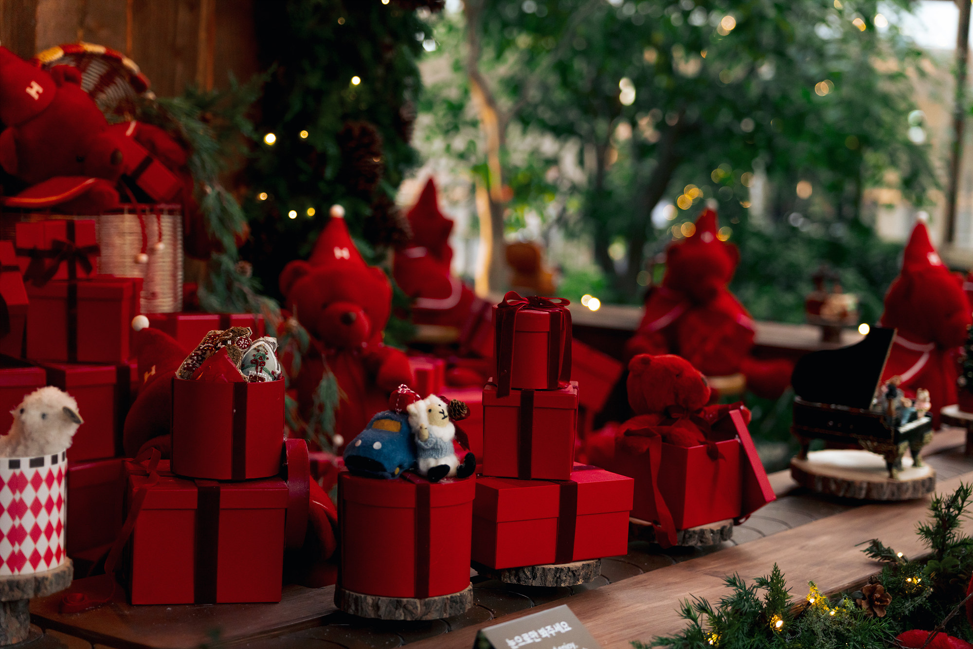 콘셉트만 바뀌었을 뿐, 크리스마스 공방 안에서 즐길 수 있는 프로그램은 지난해와 비슷했어요.(거의 포토존입니다.) 달라진 점이 있다면 여러 가지 물건을 살 수 있었던 길거리 상점이 없어지고 한 군데에서만 물건을 살 수 있도록 만들었는데, 그 덕인지 지나가는 길목에서 사람들이 뒤엉키는 일은 크게 없었어요. 그리고 천장을 뚫을 것 같았던 높고 커다란 크리스마스트리 대신 심플하지만 겨울을 견디는 듯 눈이 내려앉은 침엽수 크리스마스트리가 옹기종기 모여 있어요.