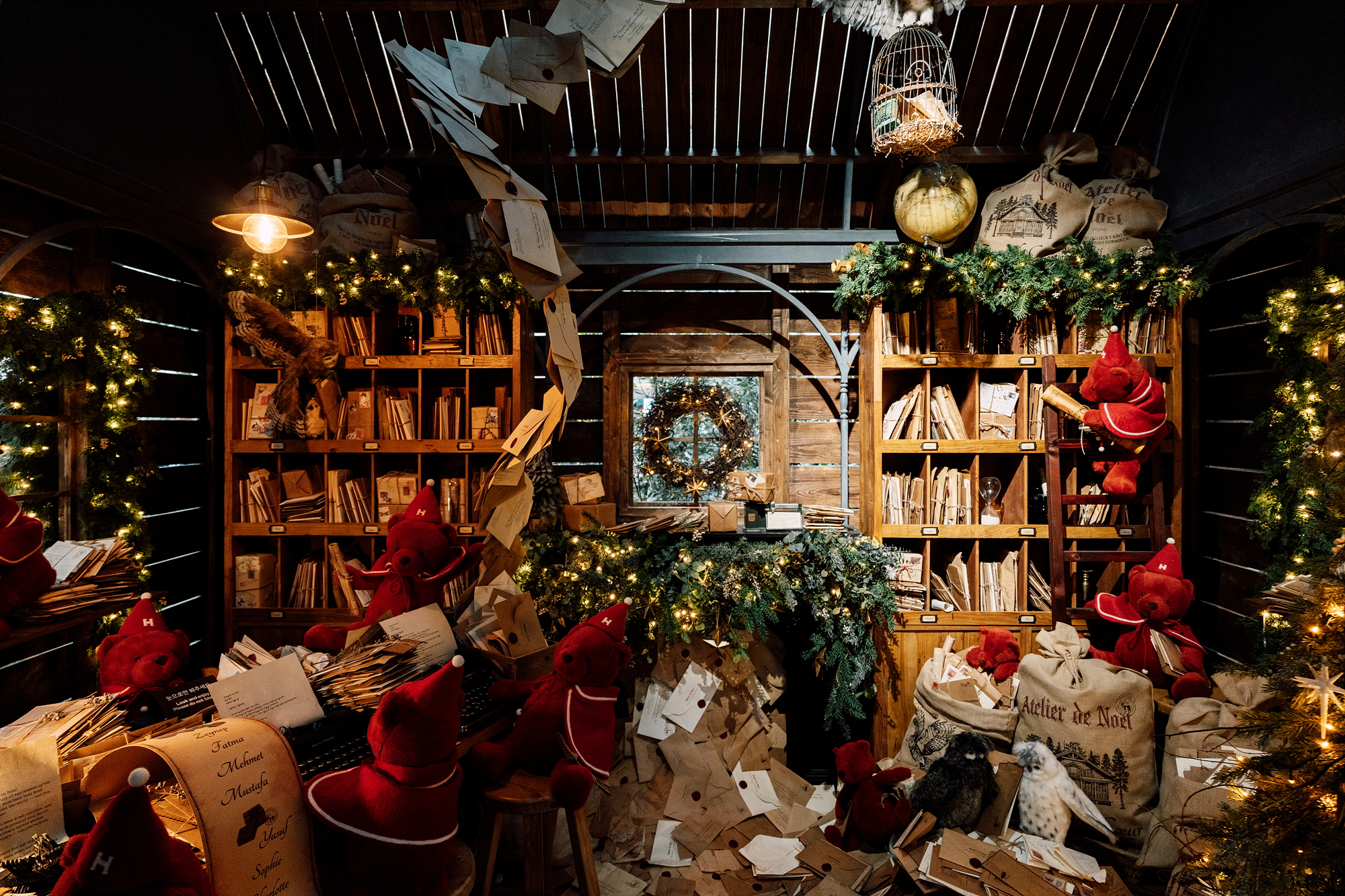 잠시 해리포터 영화가 떠오른 편지 공방이에요. 열심히 타자기를 두드리며 편지를 쓰고 있는데도 수신자 명단의 이름은 줄지 않고 이름이 빼곡합니다. 그럼에도 해리는 기특하게도 열심히 편지를 쓰고, 사다리를 타고 척척 올라가 나라별로 편지를 나누고, 다 쓴 편지를 정리해요. 편지 더미에 둘러싸인 해리들 사이에서 편지를 배달할 부엉이도 있는데, 이 부엉이는 바깥에서도 볼 수 있어요. 아마 편지를 다 배달한 뒤 쉬고 있는 모양입니다. 타자를 치는 해리와 편지를 정리하는 해리가 양편으로 나누어 있으니 양쪽 다 필수로 확인하시고, 천장까지 뻗은 편지도 꼭 구경하세요.