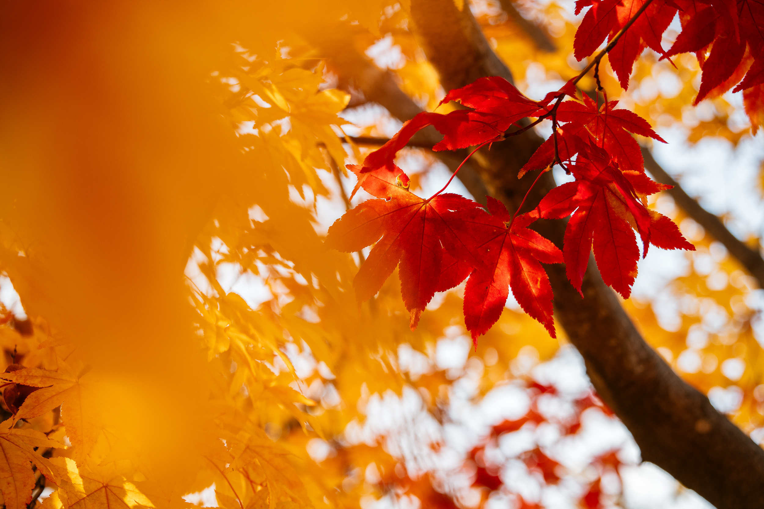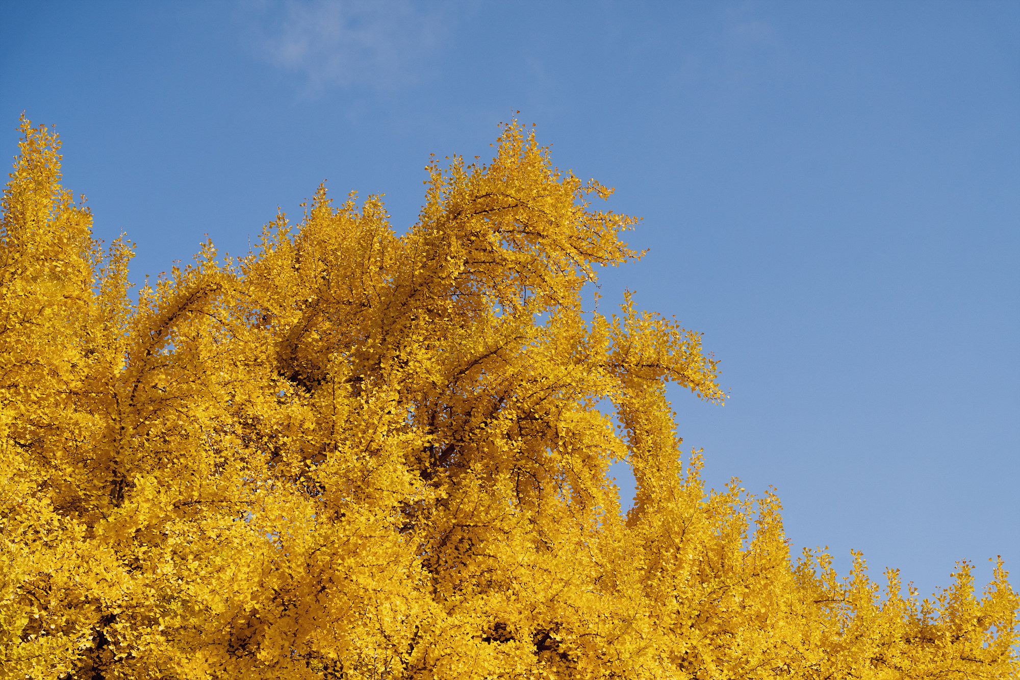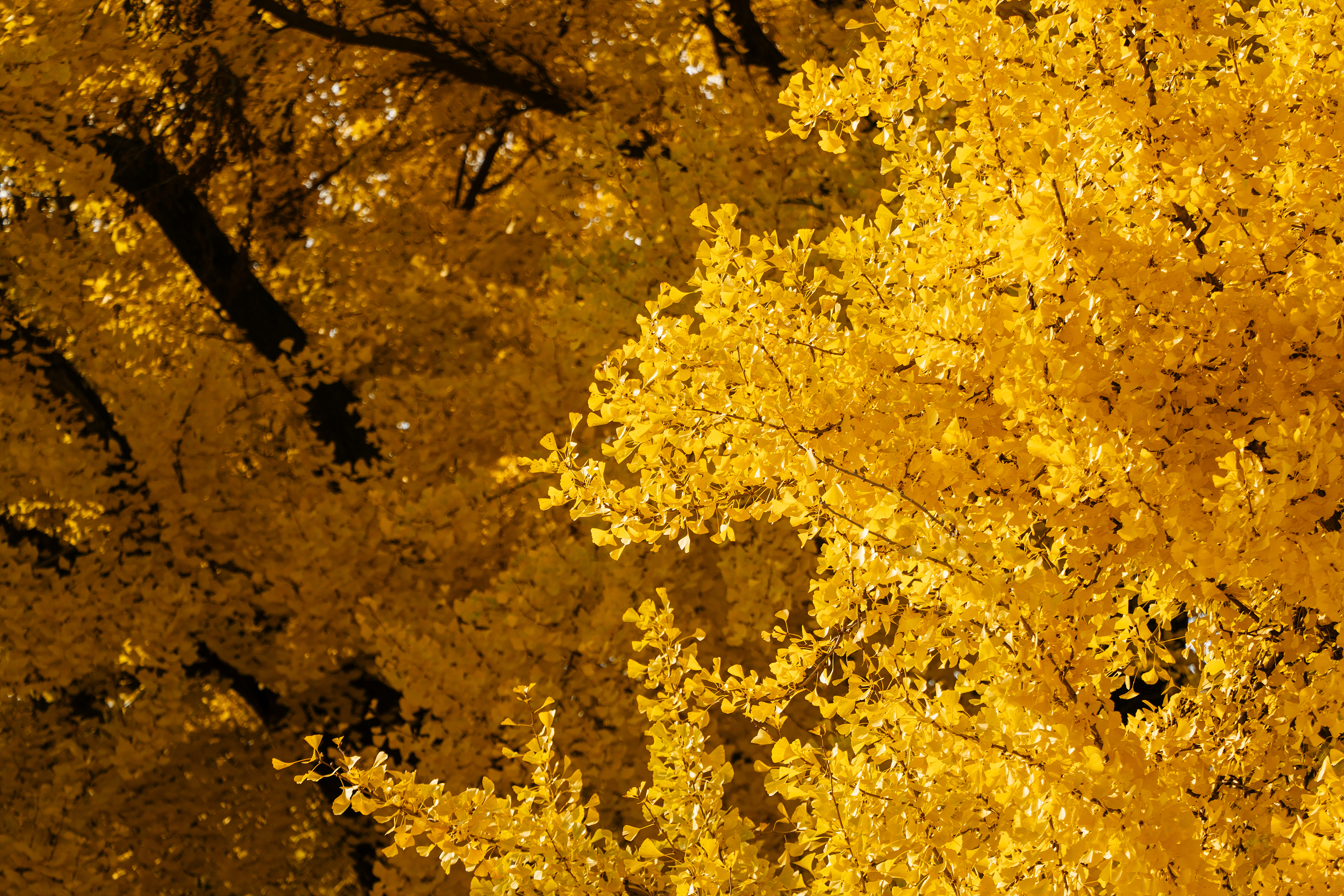 아무래도 은행잎이 노랗게 물드는 고점인 시기라 사진을 찍을 때 주변 사람들이 같이 찍히는 일이 빈번한데요. 조금 거리를 두고 망원렌즈로 촬영해 보니 비교적 나무에 집중해서 촬영할 수 있었습니다. 또 은행나무만 봐도 좋지만 그 뒤로 알록달록 자태를 뽐내는 산과 은행나무가 잘 어우러지니 눈으로 그 광경을 찍어보세요.