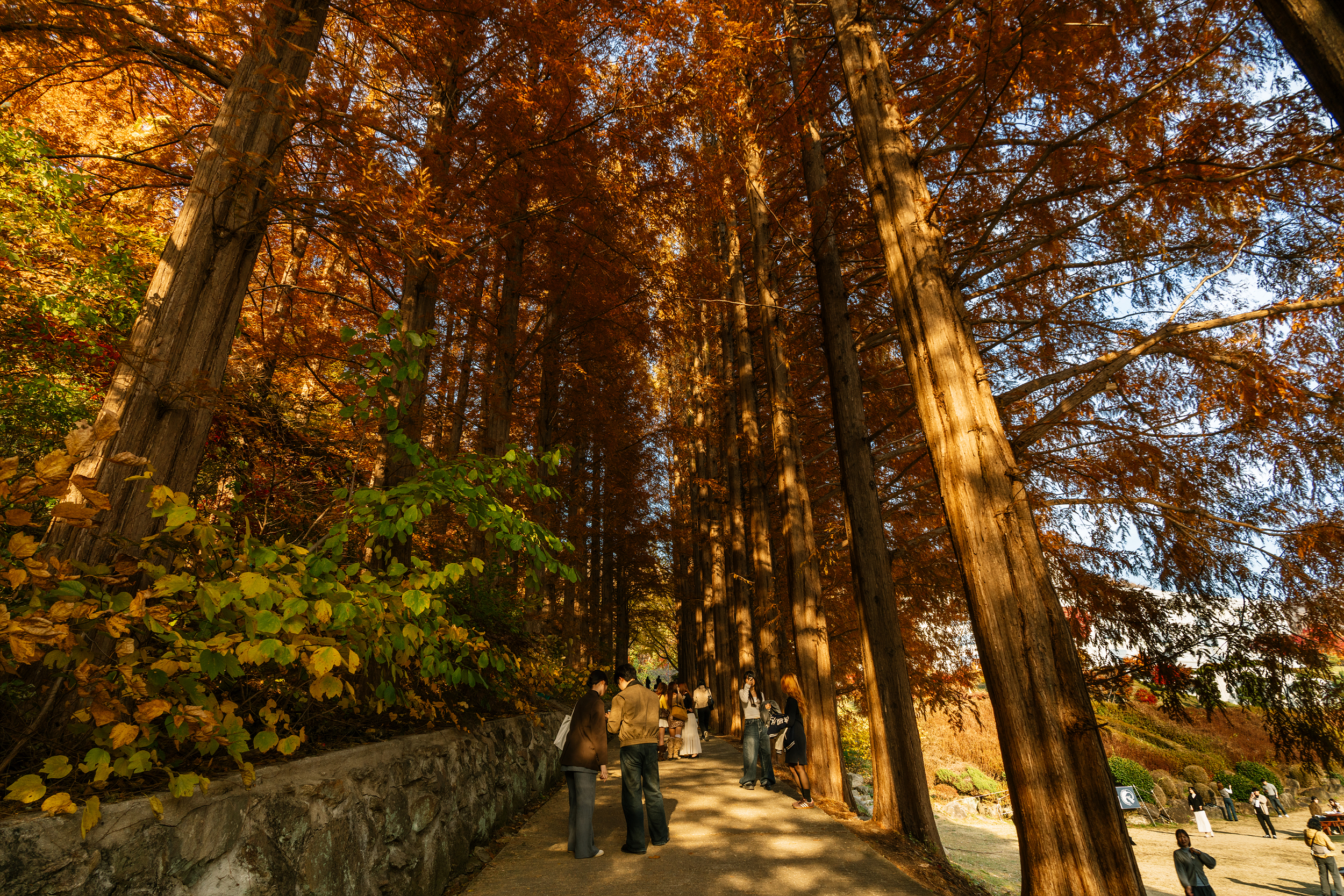 정문으로 돌아가는 길. 우리를 처음 맞이했던 단풍과 은행이 다시 보이기 시작합니다. 최고 수령을 자랑하는 은행나무부터 붉은 단풍에 메타세쿼이아까지 하루 동안 가을에 푹 젖어있었더니 아직 가을이 가지 않았음을 실감했어요. 가을이 조금만 더 머무르다 갔으면 좋겠네요.
