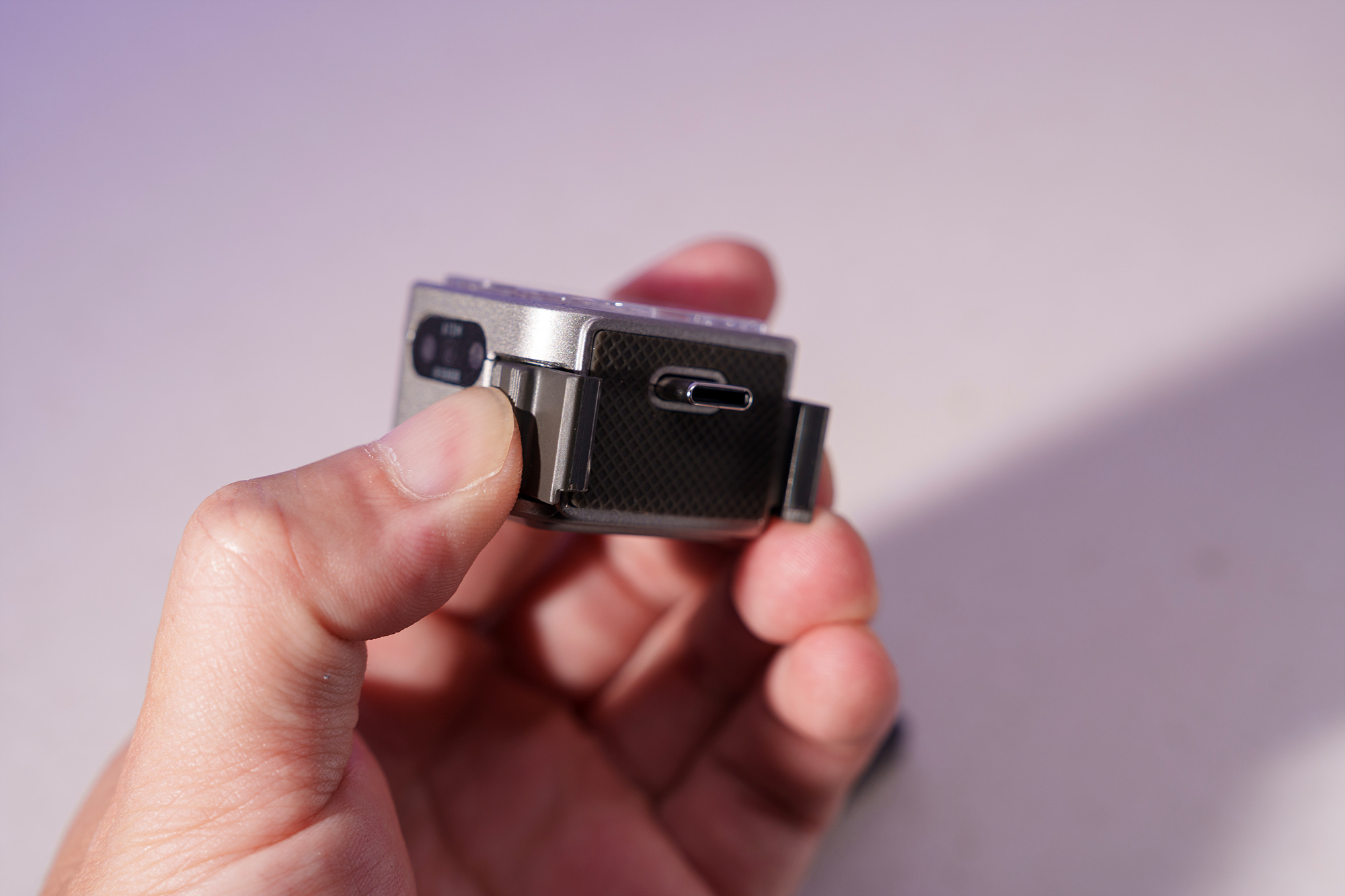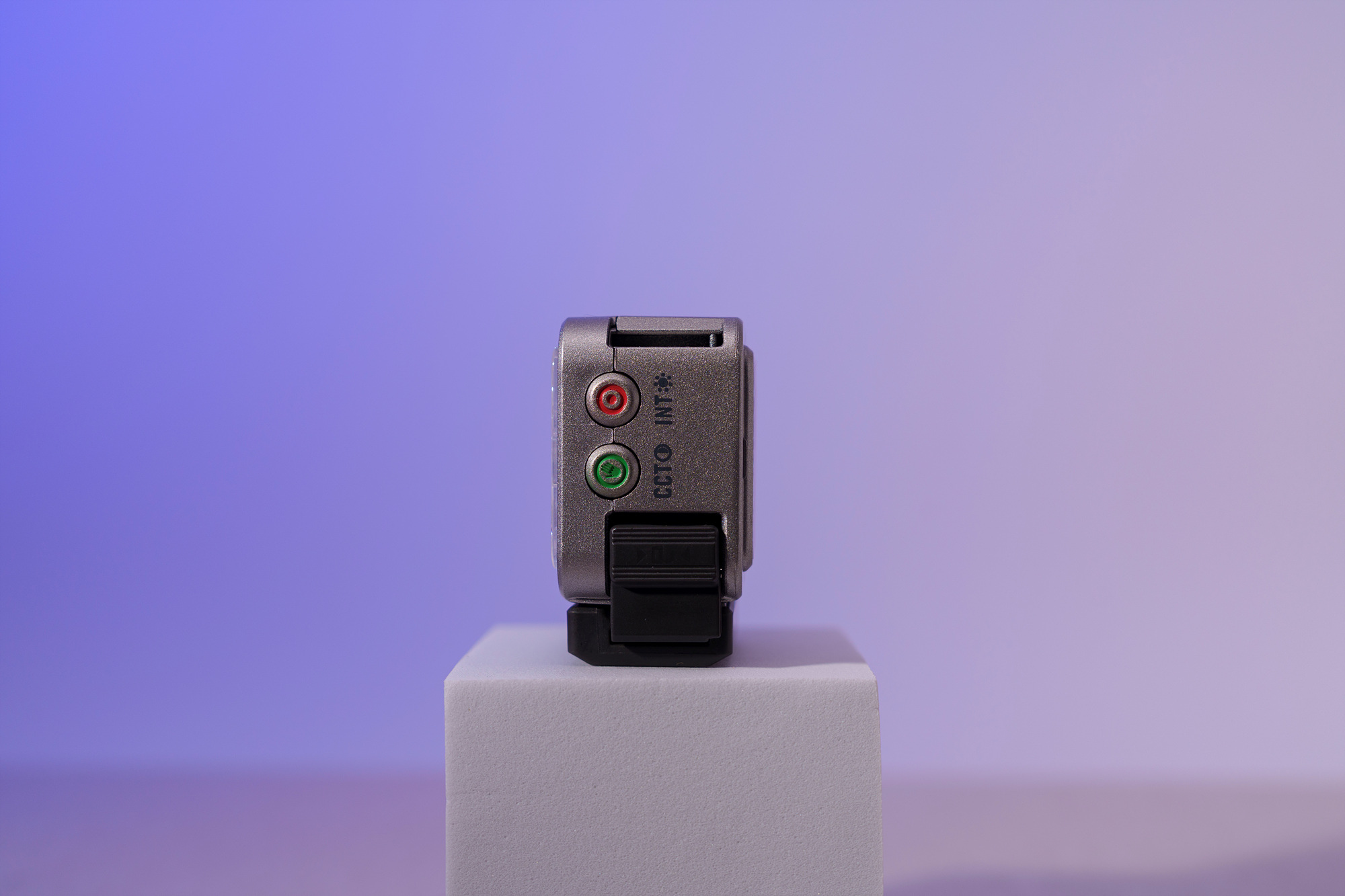 모듈식 스태킹을 하여 여러 개의 할로우 Atom2 와 결합하는 부분입니다. 평소 쓰지 않을 경우에는 방진 커넥터로 닫아놓으시면 이물질이 들어가는 것을 방지할수 있고요. Universal Creator Kit에 구성된 콜드 슈 어댑터와 액션캠 마운트를 번갈아 끼울 수도 있습니다. 한 가지 구성에 두 가지 제품 모두 사용 가능합니다.