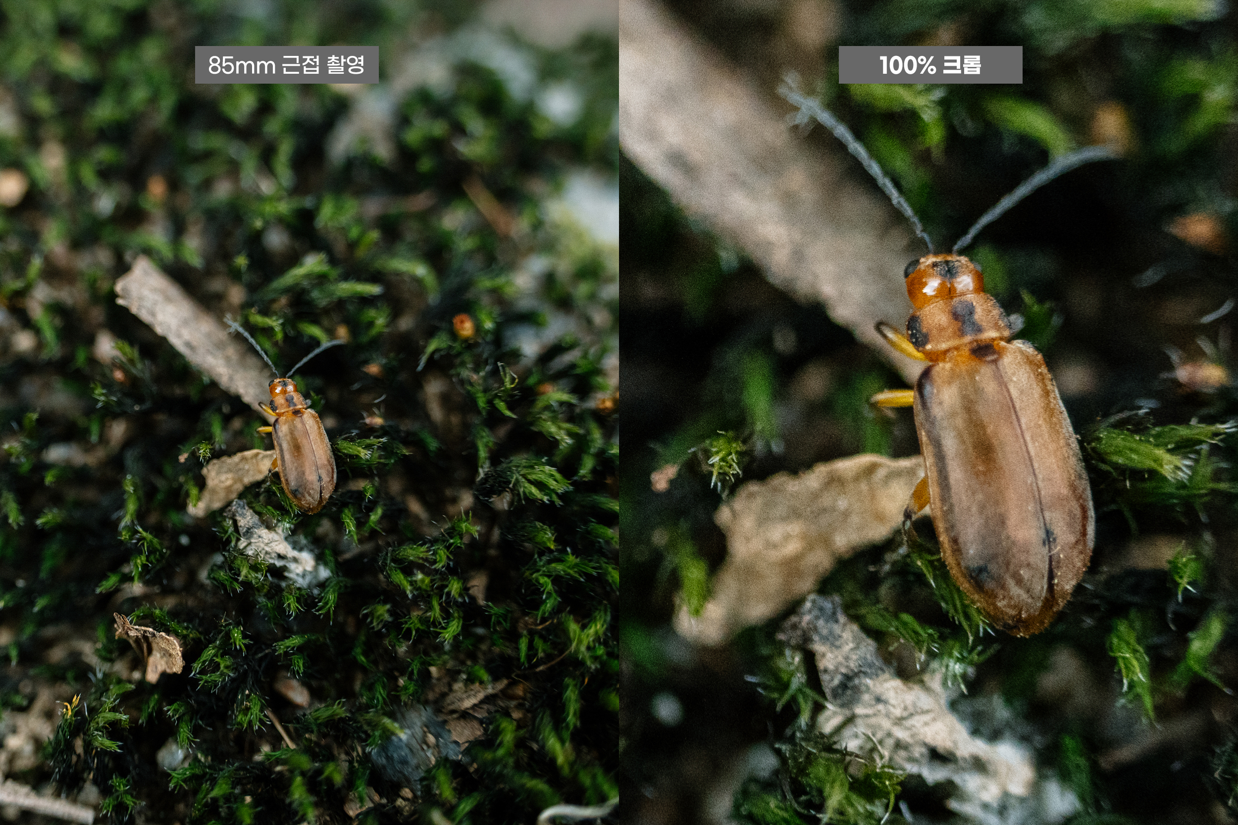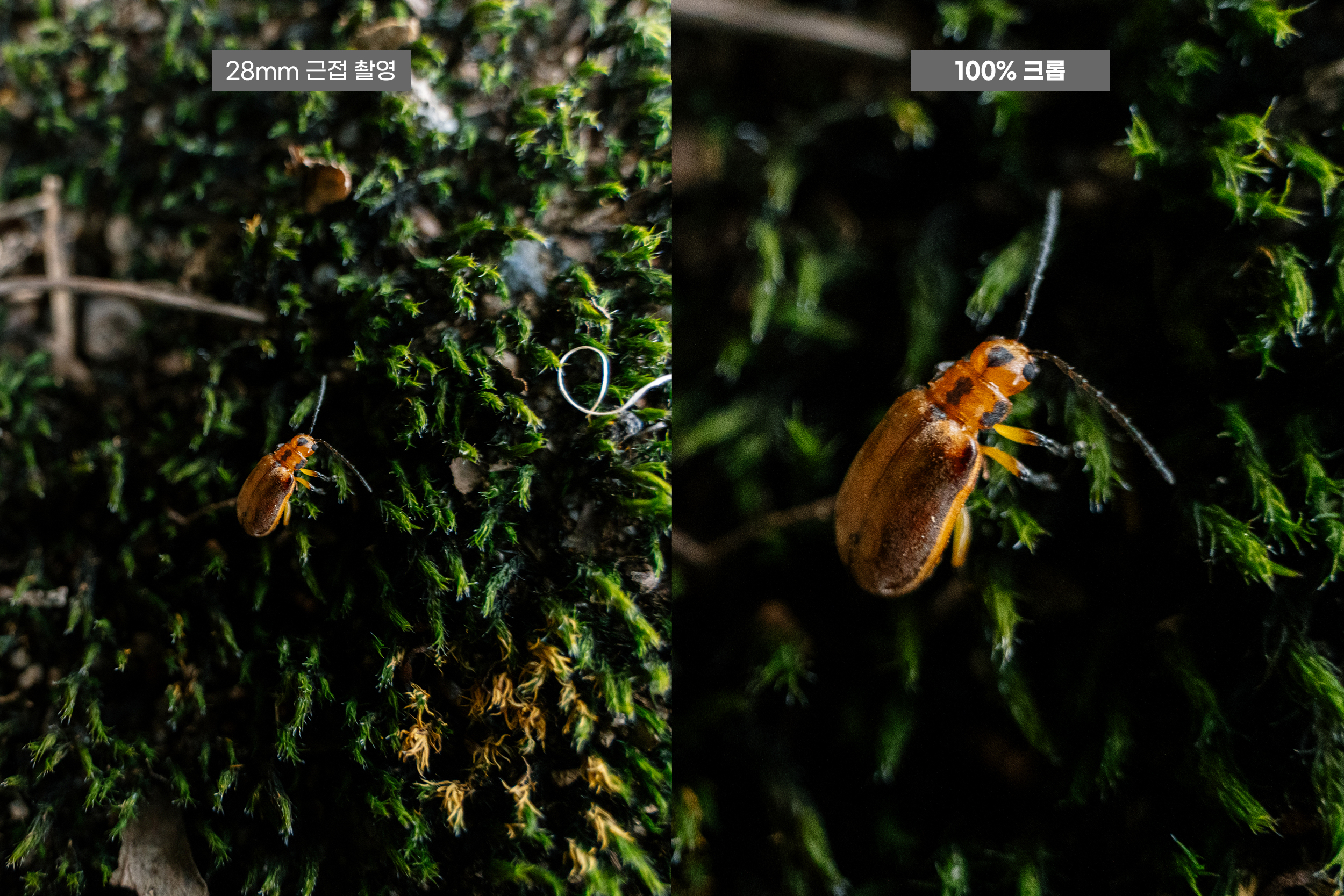 매크로 촬영을 하면서도 뒷배경의 풍경을 담아내고 싶다면 28mm. 보다 집중도 있는 모습을 담아내고 싶다면 85mm로 촬영을 할 수 있는 것처럼 촬영하는 사람의 의도를 잘 표현할 수 있다는 게 큰 장점입니다.