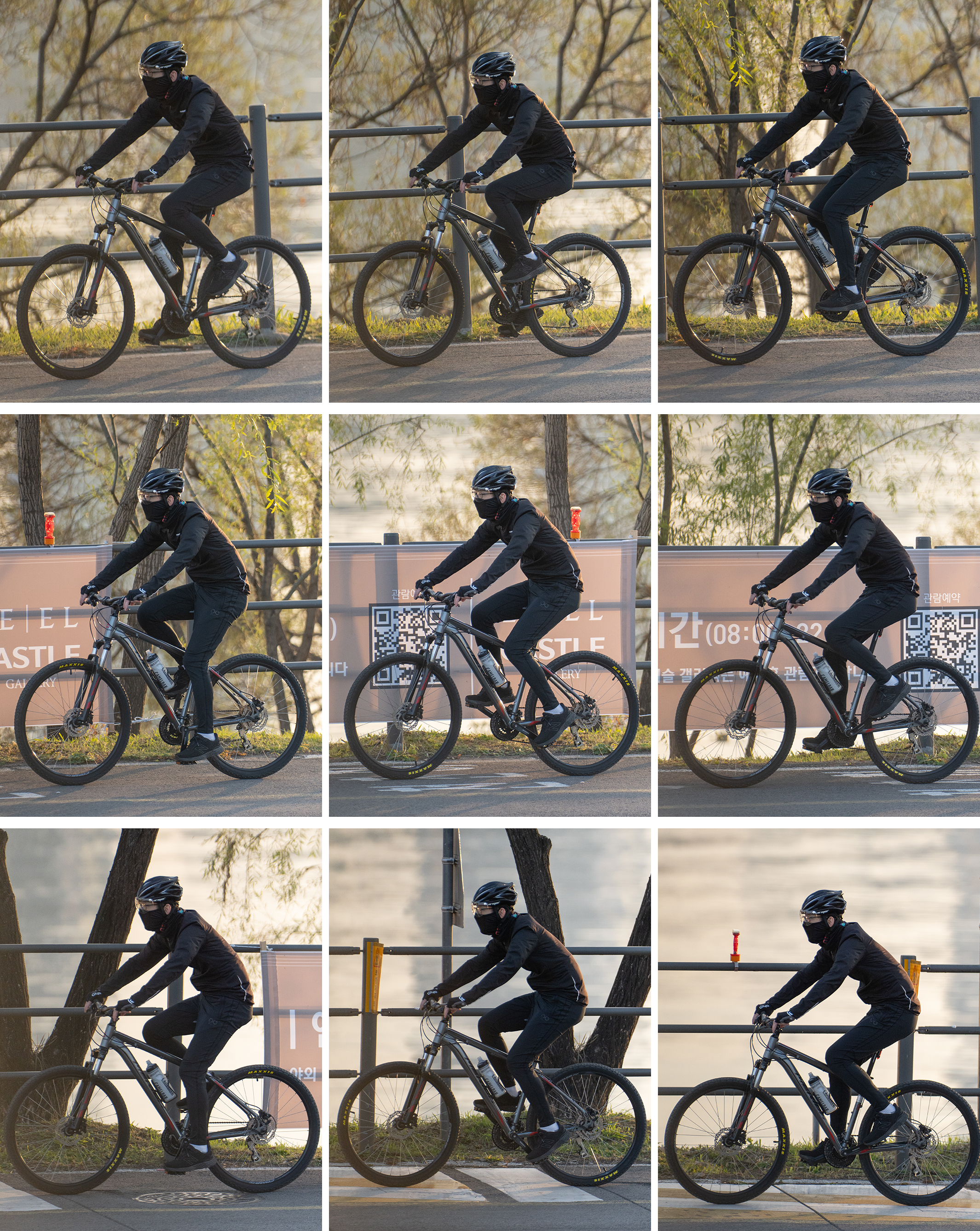 AF 추적 속도는 장망원 렌즈라면 갖춰야 될 기본 소양 정도 될 것이다. 어느 정도 무난한 추적 속도로는 장망원 렌즈를 기대하는 사진가들의 구미를 당기기에는 무리가 있다. 이 렌즈의 AF 성능을 확인해 보자. 카메라 바디는 소니 a7r5, 초점 모드는 AF-C, 연사 속도는 중간으로 자전거를 타고 달리는 사람과 스케이트 보드를 타는 사람을 촬영했다. 자전거를 탄 사람의 경우, 얼굴의 윤곽뿐만 아니라 헬멧에 씌여진 글자, 물통에 씌여진 글자, 자전거 타이어에 씌여진 글자 모두 선명히 찍혔을 경우에 초점이 맞았다고 판단했다. 그 결과 9장의 사진 중 첫 번째 사진을 제외한 8장의 초점이 맞았다. 확률로 따지면 약 89%의 검출률을 보였다.