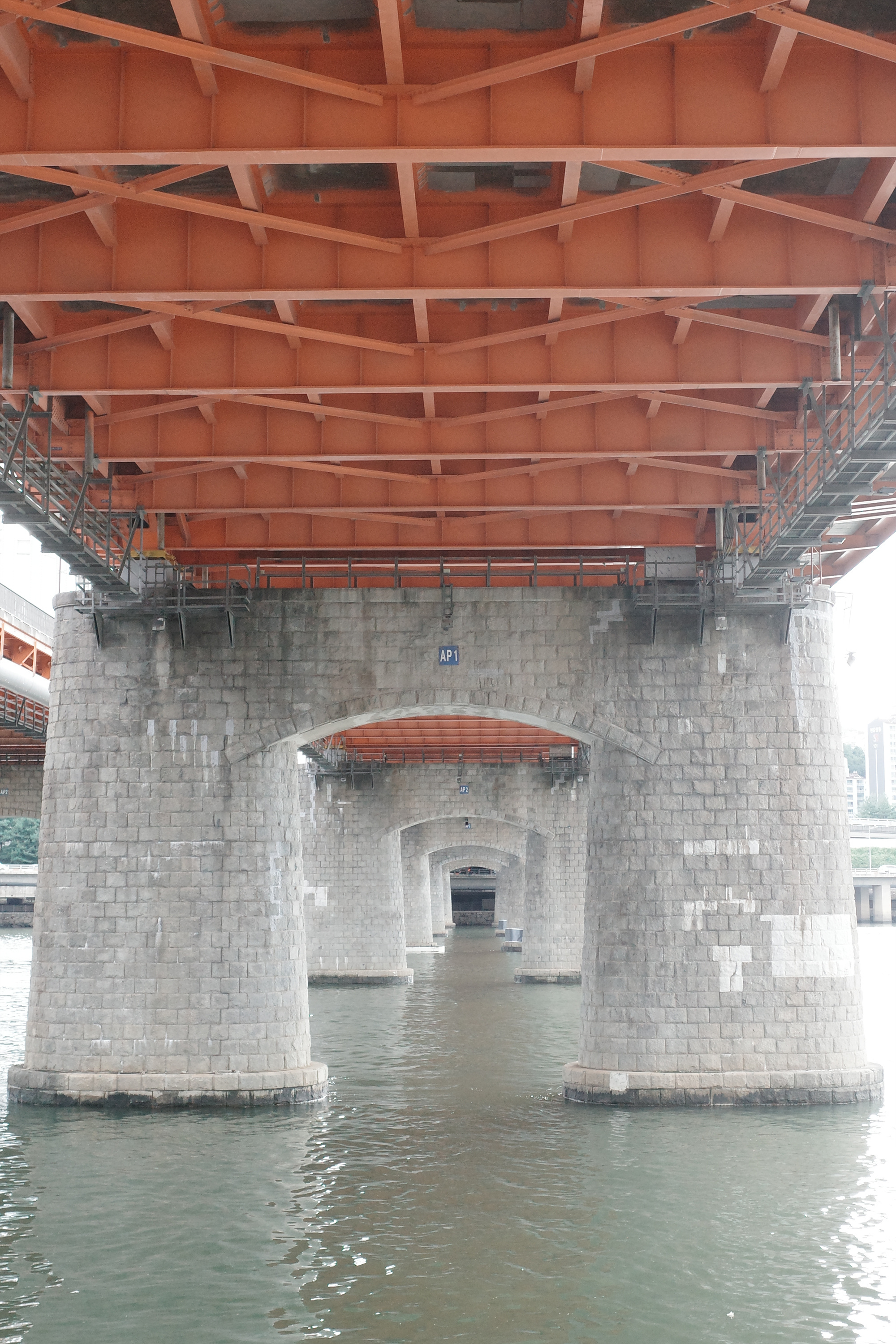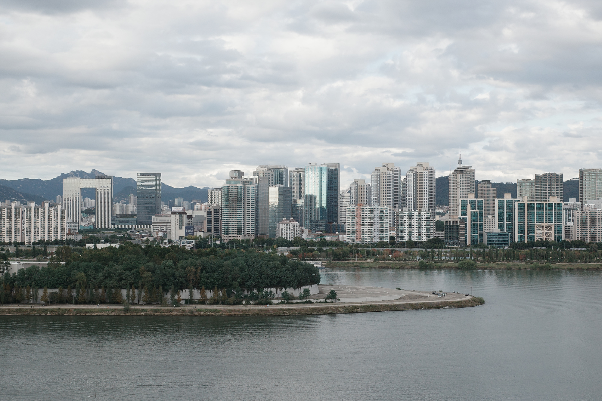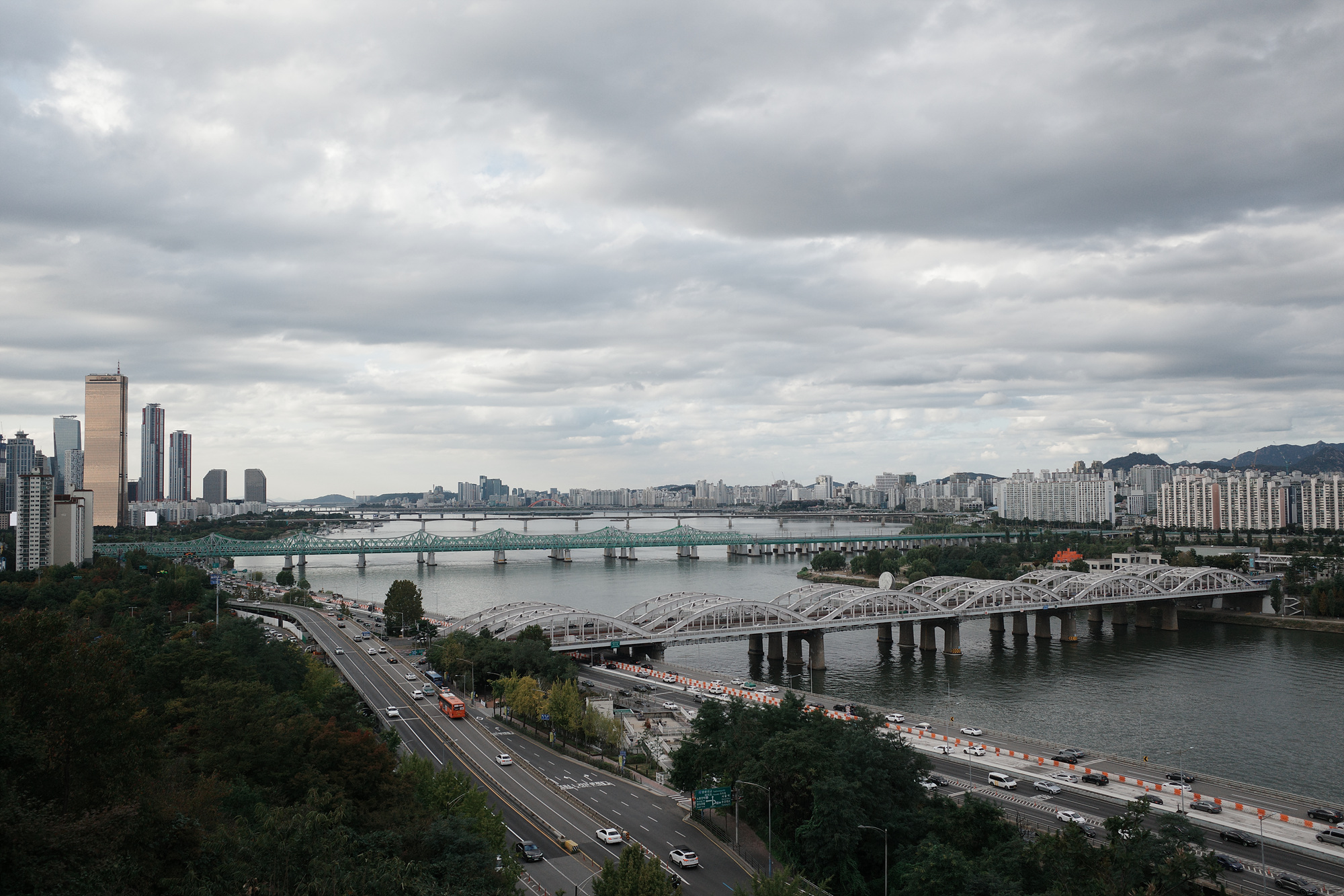 이때 쯤엔 구름이 하늘을 거의 뒤덮은 상태였던지라 네거티브로 찍으니 실제로 보는 것보다 사진이 다소 어둡게 나와 차분함 대신 쓸쓸한 도시 풍경을 만들어냈다. 하지만 실망하진 않았다. 날씨가 변화하면서 네거티브가 낼 수 있는 또 하나의 분위기를 만났으니깐. 이날 봉준호 감독의 영화 <괴물>(2006)이 저절로 떠올라 한 장면, 한 장면을 곱씹으면서 한동안 도시를 내려다봤다.