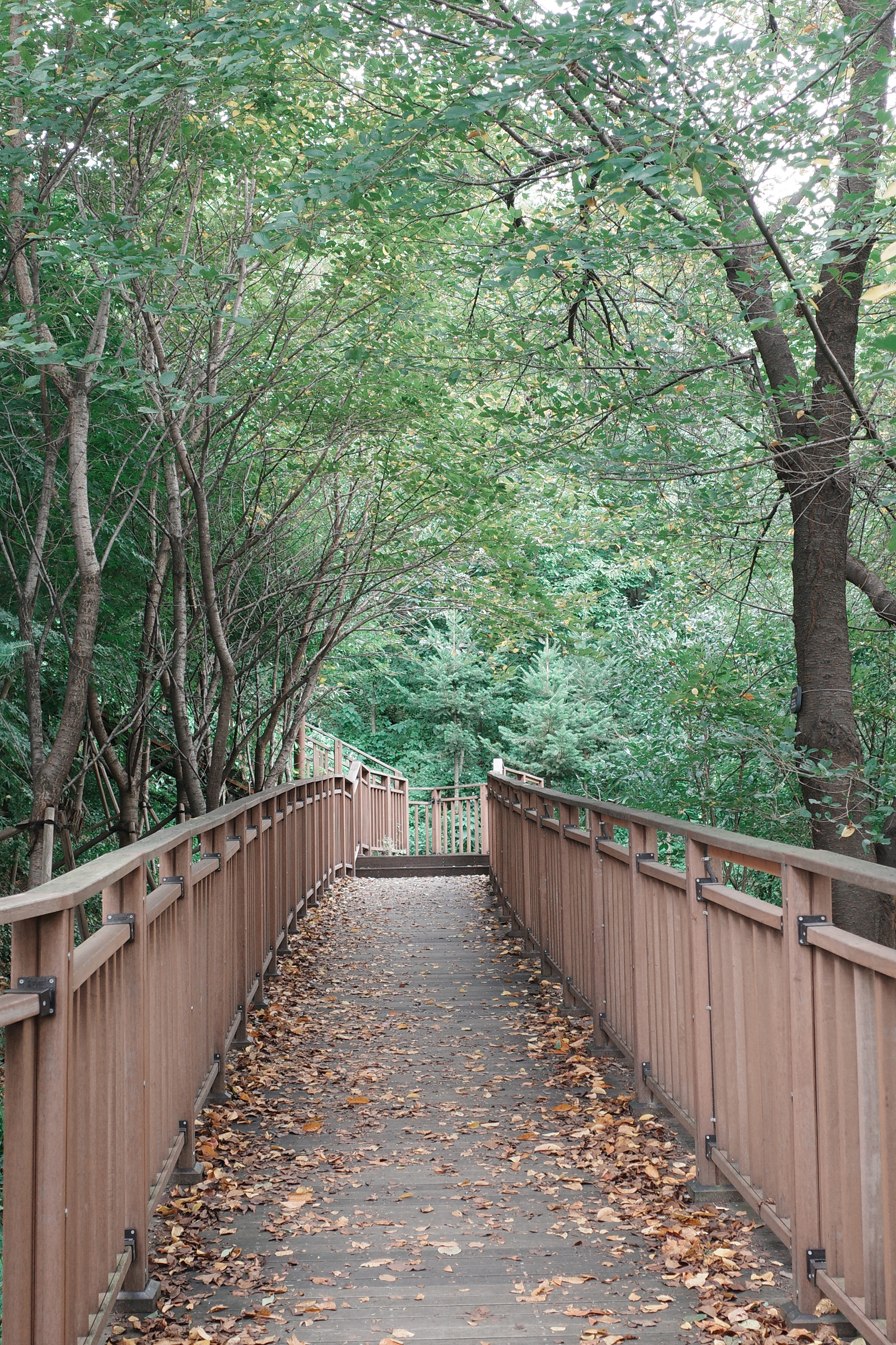 한강대교를 걸어 노들섬처럼 일몰 맛집, 노을 맛집으로 유명한 용양봉저정공원으로 향했다. 하늘 전망대까지 생각보다 시간이 소요됐는데 가는 길에 볼거리가 은근히 많아서다. 이를테면 고양이라든가 꼿꼿하게 선 강아지풀, 달걀 프라이 같은 개망초, 덱 위로 떨어진 나뭇잎 같은 가을의 흔적 말이다.(촬영 당시 초가을이었다.) 올라가는 덱 중간에 촬영 포인트 지점이 있지만 시야가 트이지 않아 꼭대기까지 올라갔다. 하늘 전망대에 도착했을 때 가장 먼저 보였던 것은 한강 위로 나란히 줄을 선 대교였다. 그리고나서야 노들섬이, 차도 위를 달리는 자그마한 자동차가 보였다.
