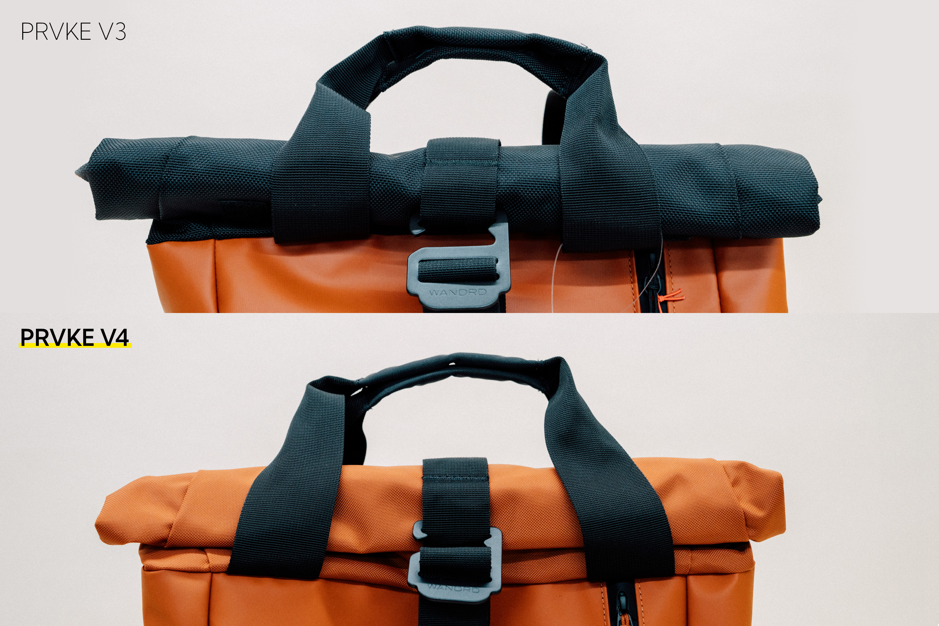 특히 PRVKE 21L V3까지는 바디컬러와는 별개로 롤탑, 스트랩고리, 지퍼 등이 검은색이었습니다. 컬러감은 독특한데 롤탑, 지퍼 등은 블랙이라 독특한 컬러를 골랐을 때 온전히 느끼기 어려웠는데 V4로 리뉴얼 되면서 롤탑, 지퍼, 스트랩 고리 등 여러 요소가 바디컬러와 동일한 컬러로 변경되니까 컬러감을 한껏 느낄 수 있고, 통일성도 있어서 한층 고급스러워 보입니다. 최근 SUV 자동차들이 블랙 플라스틱 파츠들을 바디컬러로 변경해서 고급화를 이룬 것처럼 말입니다.