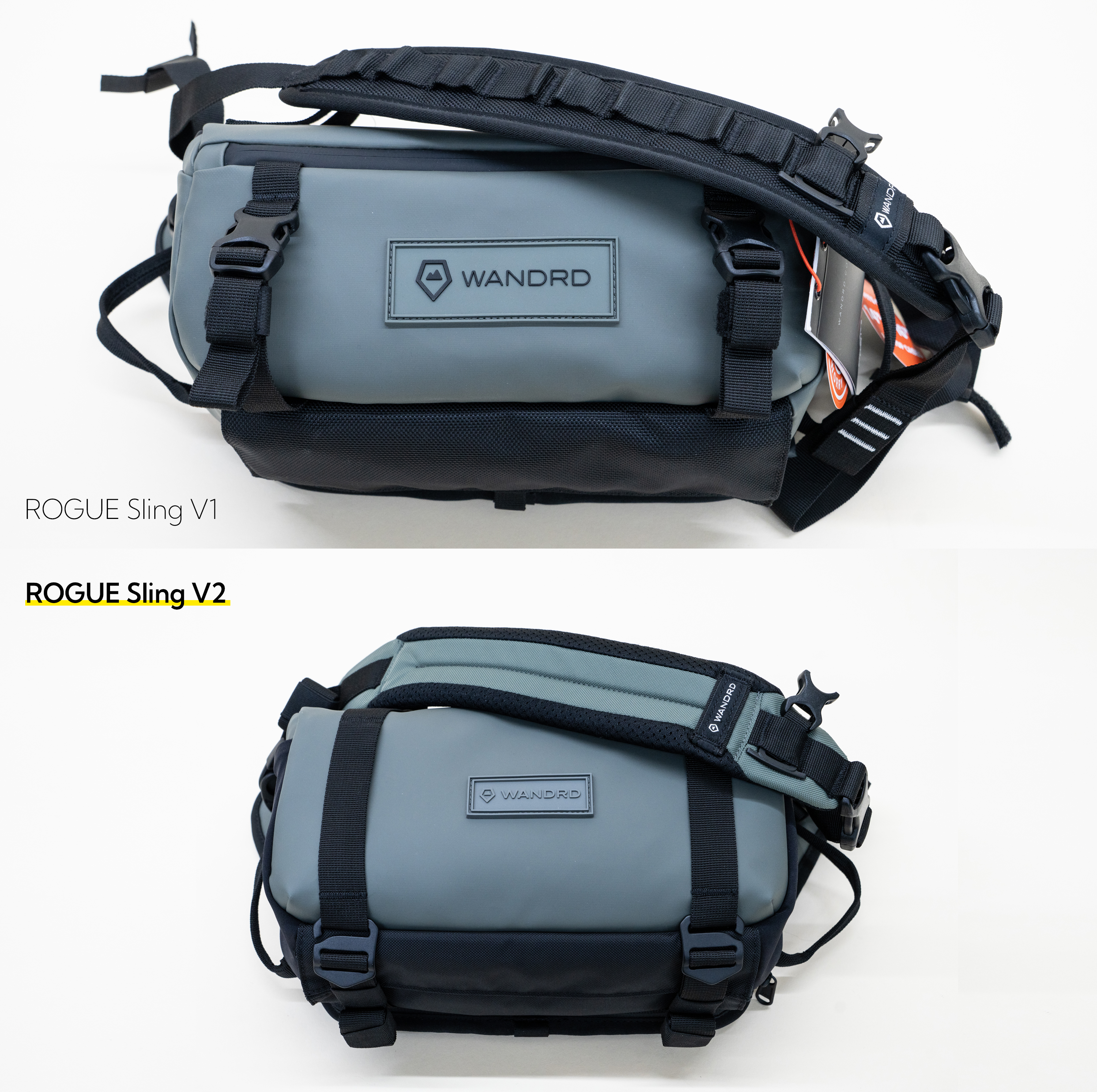 ROGUE Sling V2에서는 그 변화의 폭이 좀 더 커 보입니다. 존재감 넘치던 로고는 작게 바뀌면서 바디 컬러로 변경되었고, 가방 로고 위에 있던 외부 포켓이 사라지고 장비를 걸 수 있는 스트랩 고리가 가방 하단으로 이동해서 삼각대 등을 넣고 다닐 때 자연스럽게 무게 중심이 아래로 가게 만들어서 밸런스를 맞췄습니다. 슬링백은 작은 가방이지만 장비를 가지고 다니면서도 편안한 착용감을 유지할 수 있다는 게 꽤 매력적인 부분입니다.