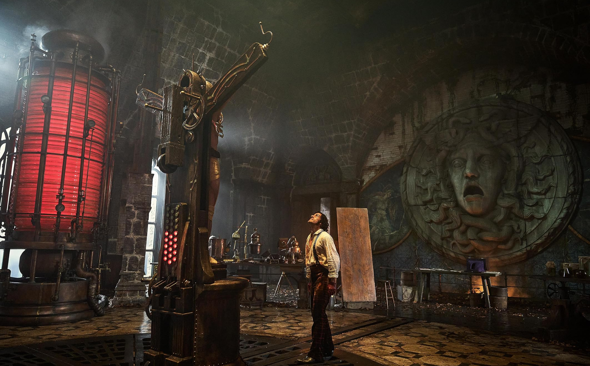 빅터 프랑켄슈타인이 오직 인간 창조에 심혈을 기울이며 하나, 하나 설계했기 때문에 이 피조물은 퍽 아름답기까지 합니다. 여기에서 감독의 미장센과 연출이 돋보이는데요. 피조물이 만들어지는 과정부터 빅터 프랑켄슈타인의 스산한 성까지 어느 하나 아름답지 않은 것이 없습니다. 물론 신체를 가닥가닥 붙여 새로 만드는 작업이다 보니 불쾌한 장면이 꽤 나오고 피조물의 파괴적인 힘이 불러온 결과가 잔인하지만 어쨌든 아름답습니다.