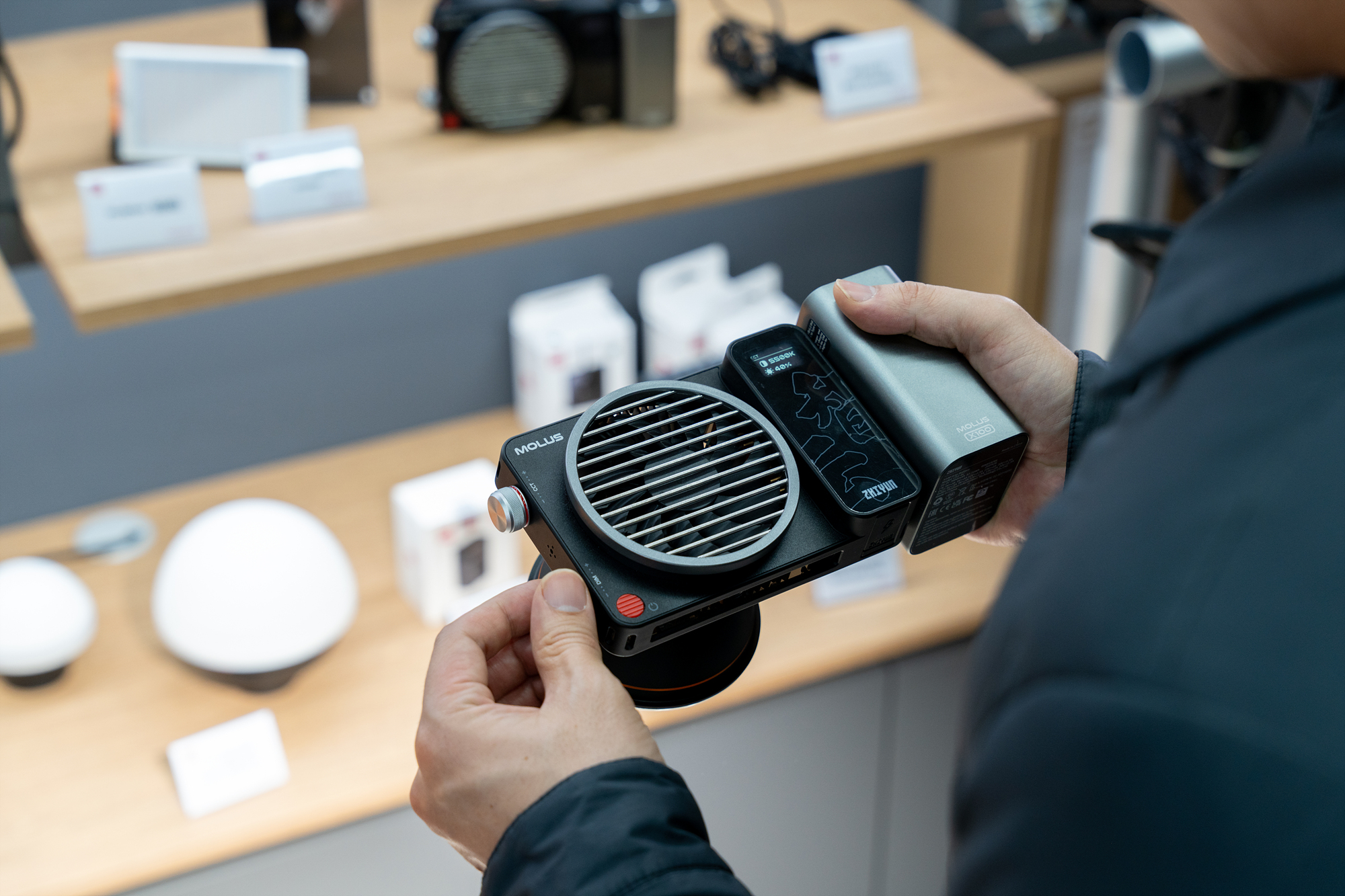 애걔, 크기가 저것밖에 안 되는데 100W라고? 100W가 맞다. 높은 광량이 필요한 환경에서 작고 가벼운 조명이 필요하다면 MOLUS X100은 좋은 선택지다. 성인 남성 손바닥 크기에 웃도는 사이즈임에도 불구하고 100W의 빛을 출력하기 때문이다. 충분한 광량 덕에 우리도 제품 촬영을 할 때 MOLUS X100을 사용하곤 한다. 조명이 뜨거워지지 않을까 하는 염려는 넣어두어도 된다. 방열 기능, 쿨링팬처럼 과열 방지는 기본으로 되어 있으니깐. 이만하면 조명계의 다크호스답다.