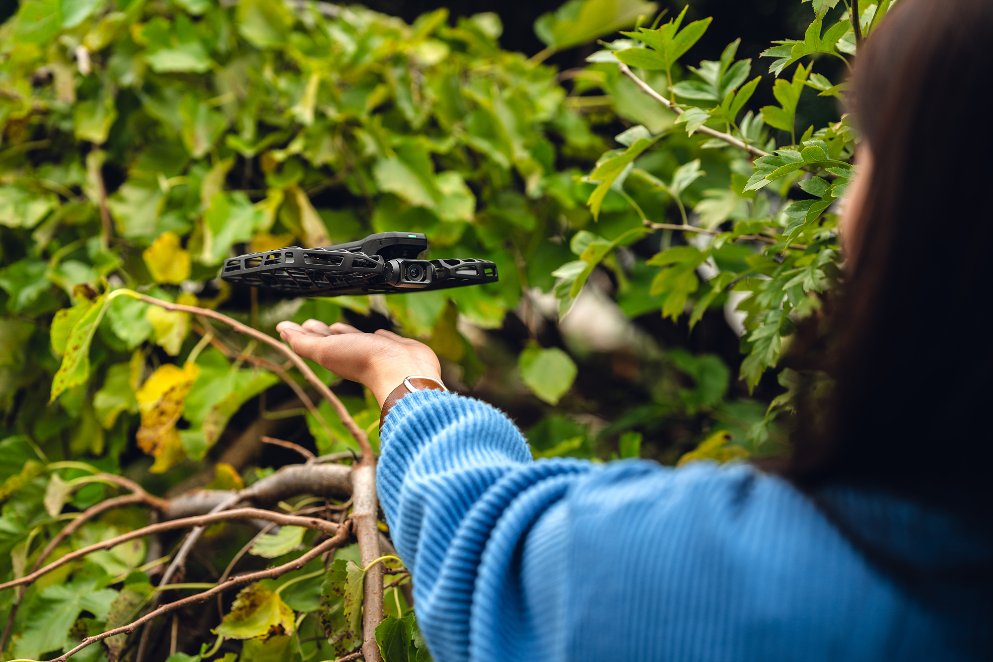 AI 플라잉 카메라 호버에어(HOVERAir)는 AI가 사람 형태를 인식하면 별도의 조종 없이도 공중에 띄울 수 있는 드론이다. 나를 졸졸 따라오거나, 내 주위를 빙빙 돌며 나와 주변 풍경을 찍거나, 하늘 높이 올라가 땅에 발 붙인 나를 촬영하는 등 내 일상을 기록하는 똑똑한 반려 드론이라고도 할 수 있다. 처음에는 조종 없이 드론을 띄운다는 것이 어색할 수 있고 의아할 수 있다. 하지만 내 손바닥 위에서 드론이 이륙하는 순간-그만큼 가볍다.- 내 산책이, 운동이, 하루가 조금은 특별해지는 경험을 할 수 있을 것이다. 상위 모델로 갈수록 활용할 수 있는 비행 모드가 많은데, 예컨대 돌리 줌 모드나 스키 모드를 사용하면 시네마틱한 효과도 줄 수 있으니 여러모로 재주가 많은 드론이라 할 수 있겠다.