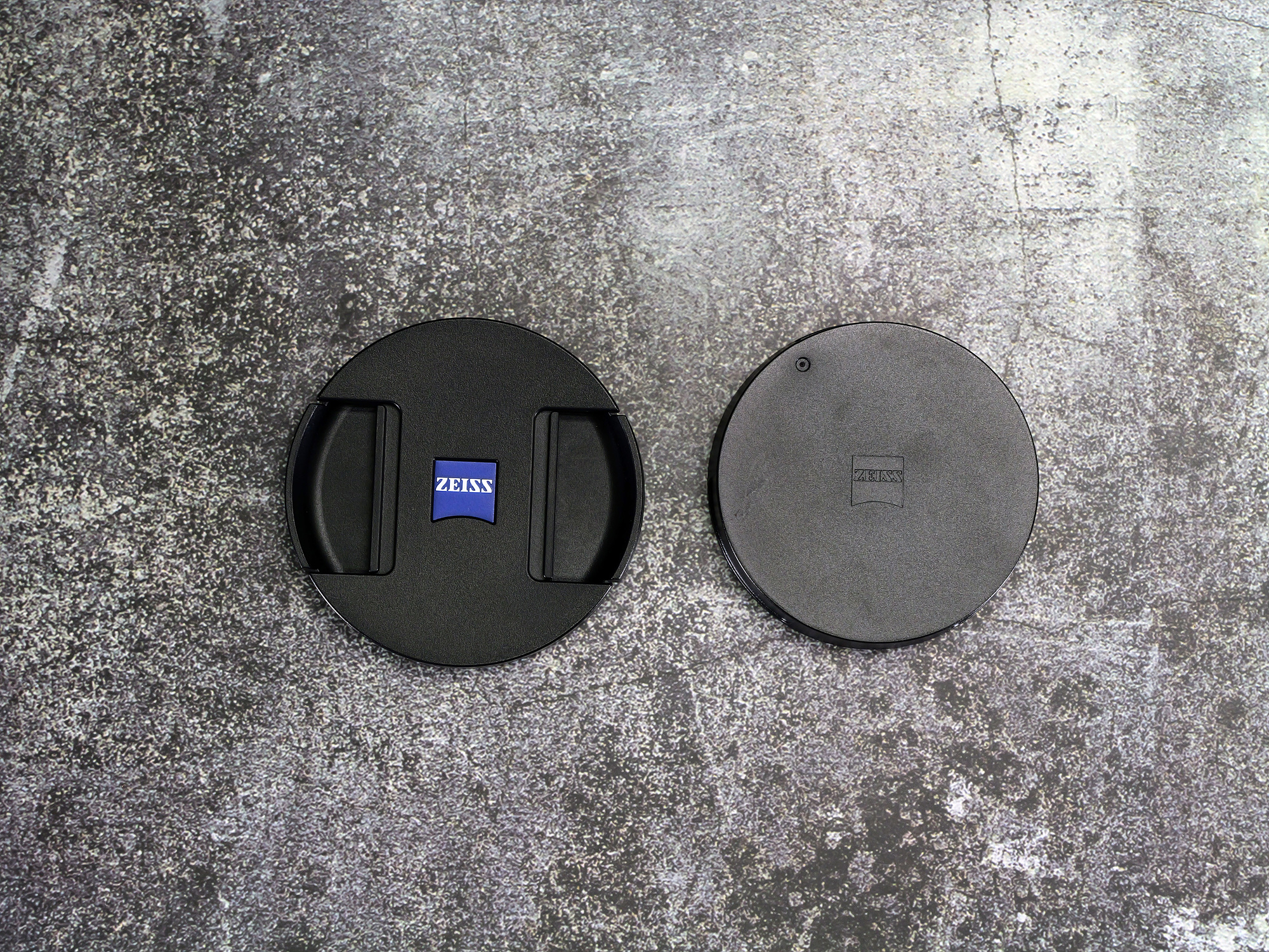 앞캡은 중앙에 자이스의 방패 로고가 박혀 있어서 한눈에 봐도 자이스 느낌이 확 나요. 뒷캡 역시 불필요한 장식 없이 깔끔한 디자인이라 렌즈 본체와 자연스럽게 어울립니다.