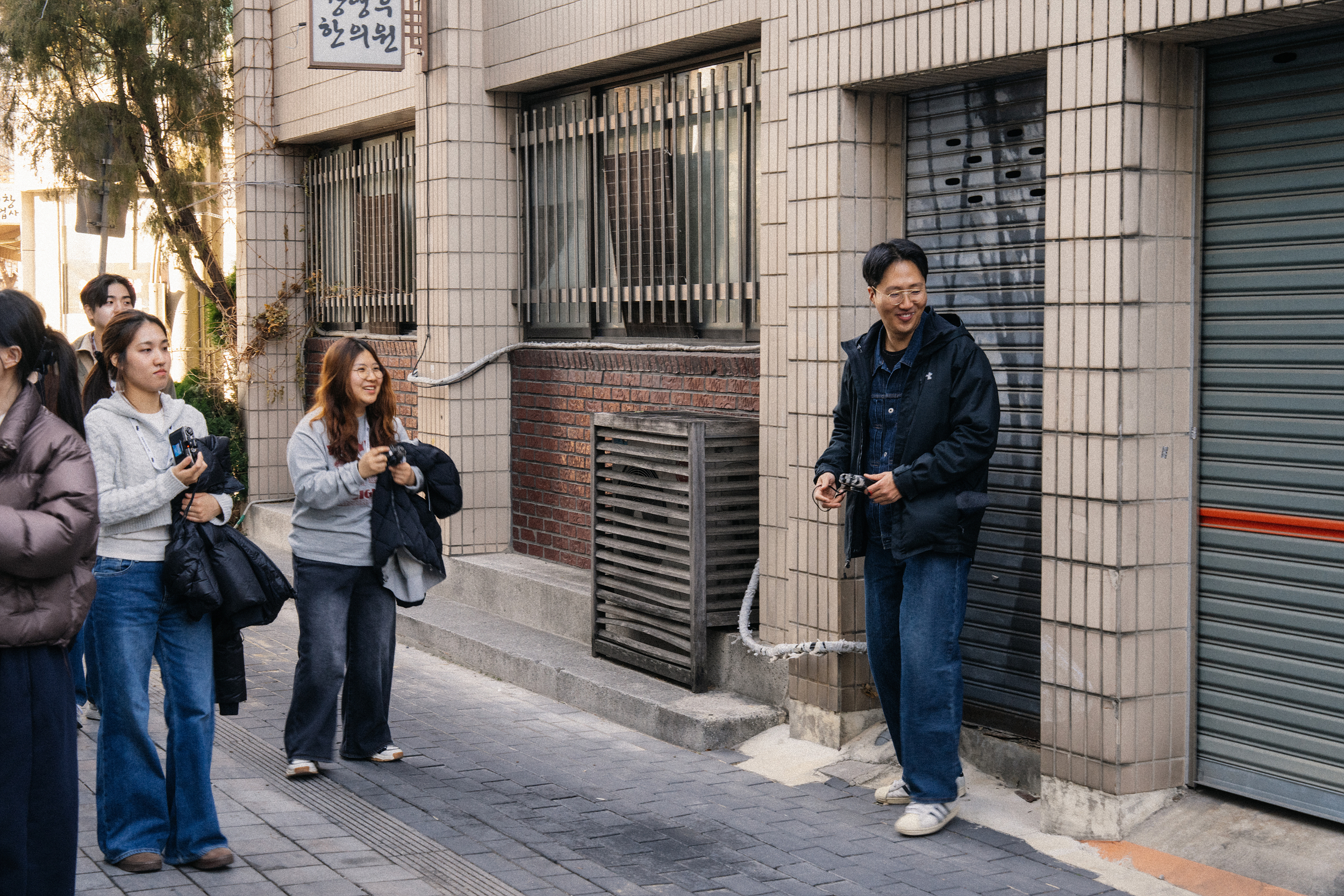 전국 필름 투어에서 빼놓을 수 없는 분이죠. 오늘의 투어 가이드이자, 길잡이, 선생님, 아버지(?), 모델을 담당해 주실 김태풍 작가님이 함께해 주셨습니다. 이제 저희와 한 몸인 것 같은 기분이 들 정도인데요. 늘 그렇듯 작가님의 호탕한 웃음과 재밌는 분위기 덕에 서먹한 분위기가 조금씩 녹았습니다. 저희도 아이스 브레이킹용 퀴즈를 준비해 왔는데 잘 먹힌 건지는 잘 모르겠지만 어쨌든 도움은 된 것 같습니다.