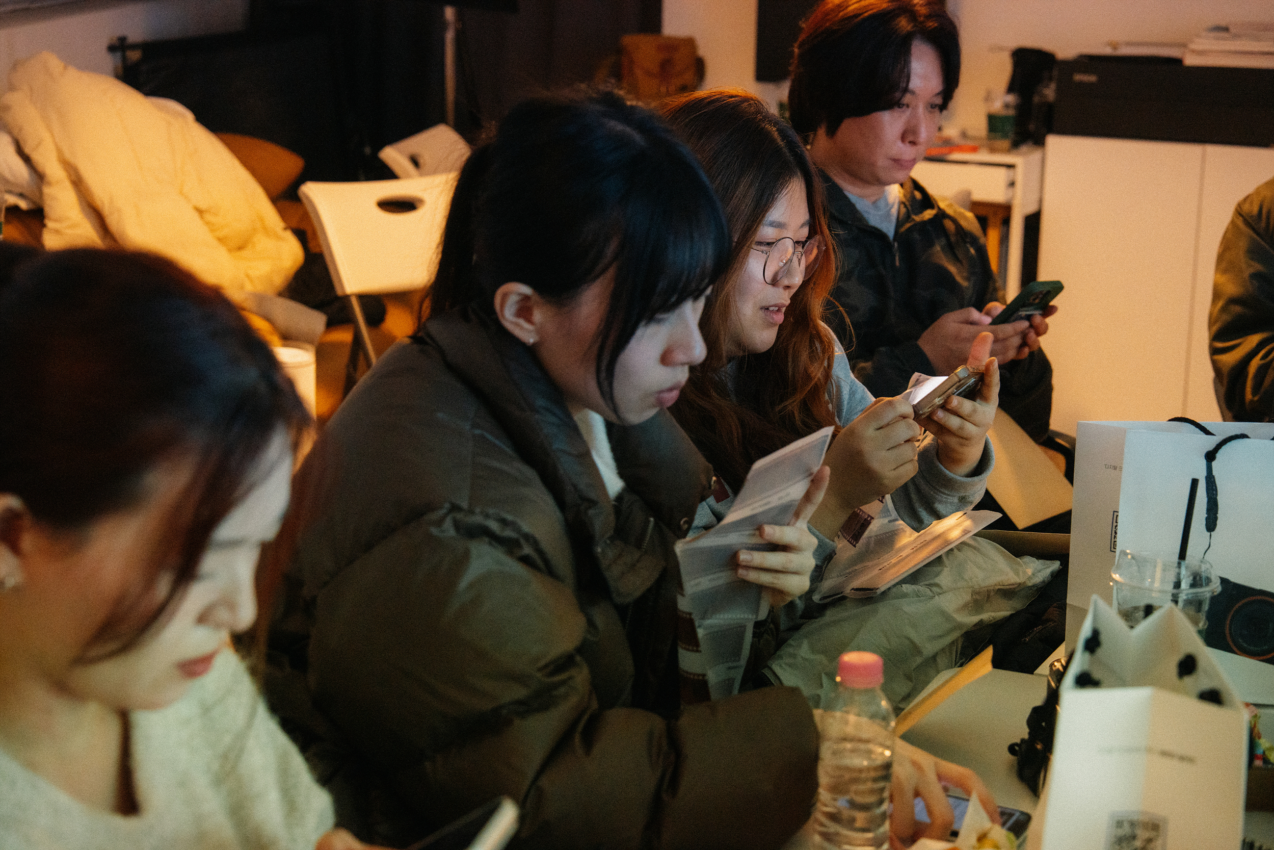 사진을 넘어서 다양한 감정을 교류하고자 작가님께서 모두에게 필름 카메라는 어떻게 관심을 갖게 되었는지, 어떤 카메라를 사용하는지. 또 카메라를 넘어 개인적으로 스트레스 받을 땐 어떤 걸로 해결하는지 등 아주 잠시지만 개인적인 이야기를 서로 나누면서 한층 더 가까워진 느낌이 들었습니다. 좋아하는 걸 위해 모인 사이지만 이런 이야기들을 통해 서로의 장벽을 허물 수 있게 된 것 같아요.