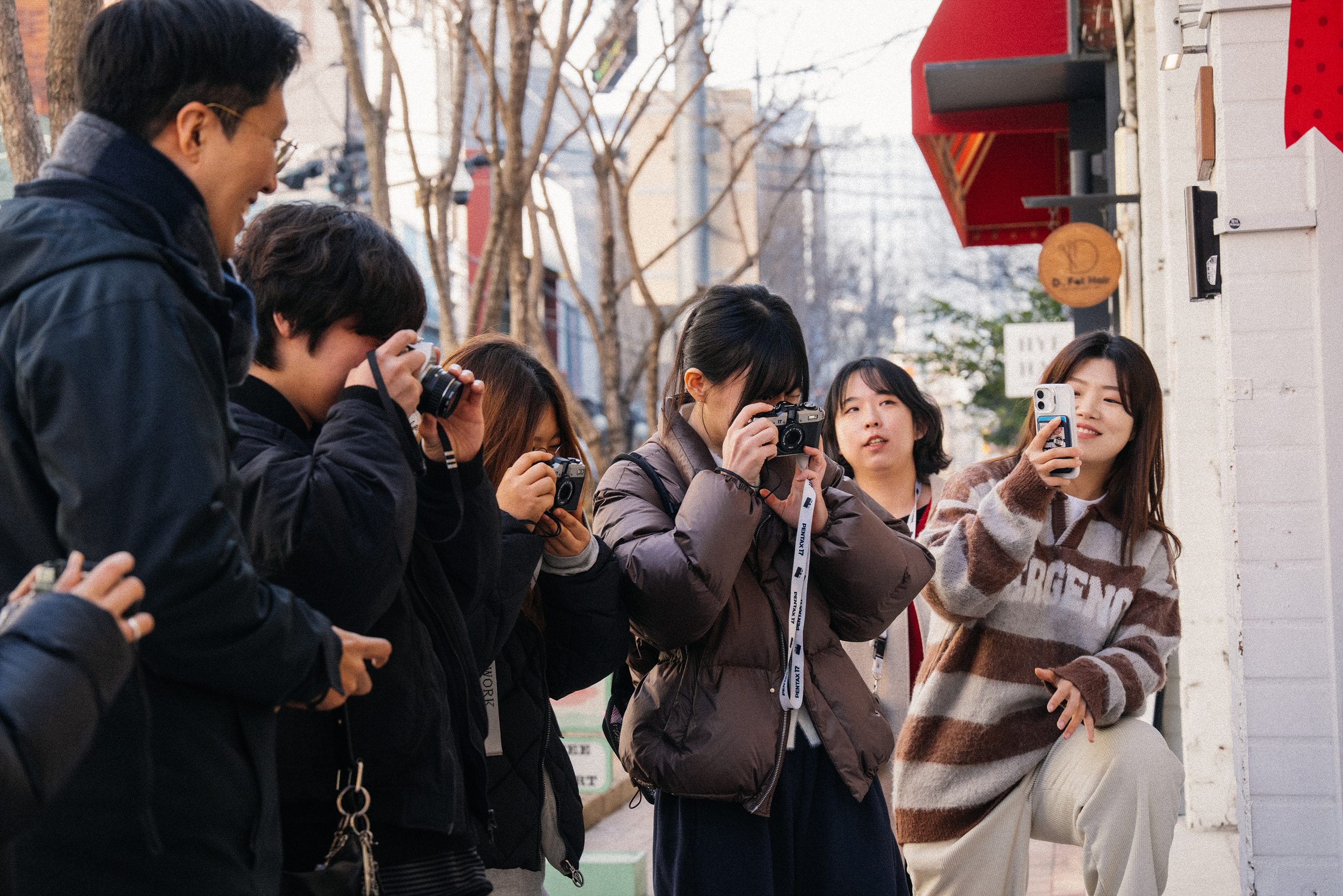 개인 카메라를 챙겨오신 분들에게는 필름만 드리고, 따로 펜탁스 17 대여를 희망하셨던 분들에게는 필름과 함께 대여해 드리면서 필름을 넣는 법부터 주의해야 할 부분, 펜탁스 17에 대한 설명도 같이 드렸어요. 펜탁스 17을 대여하신 분 중에서는 개인 카메라가 있지만 그런데도 이번 기회를 통해 써보길 희망하시는 분이 많더라고요. 아 그리고 카메라를 과감히 선택하신 만큼 필름도 써보지 않은 필름을 고르셔서 어떤 결과물이 나올지 서로 부푼 기대를 안고 이제 본격적인 출사에 나섰습니다.
