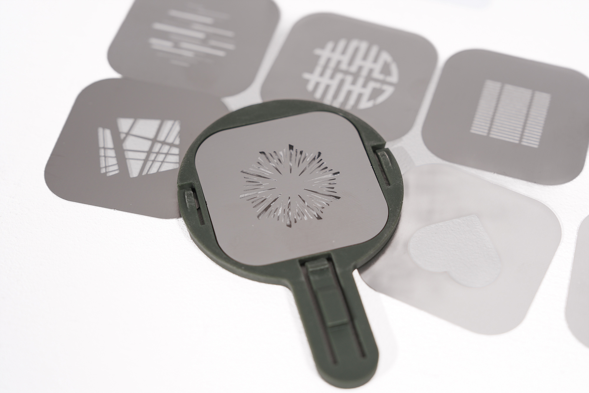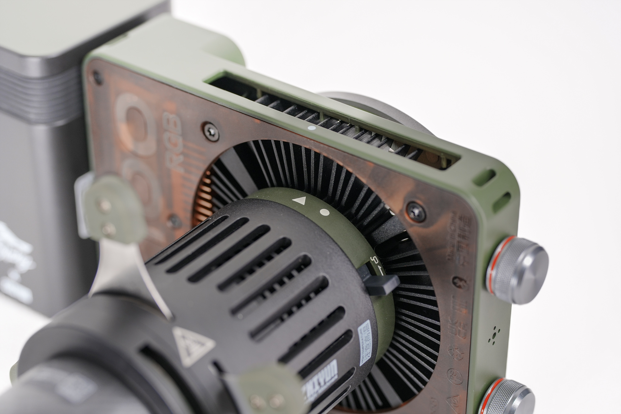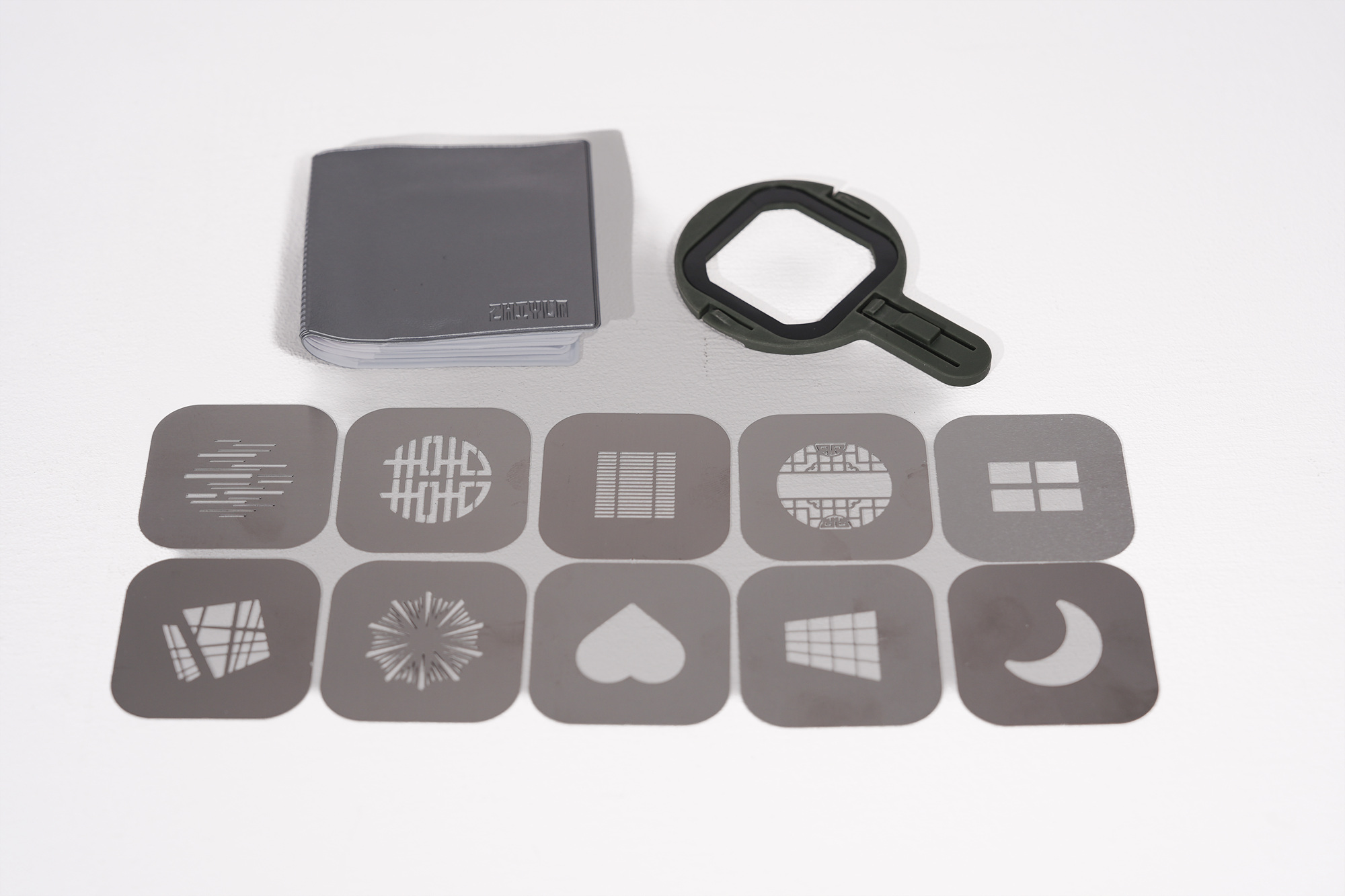 영화감독 캠매키와 콜라보한 몰루스X100 RGB 지속광 조명과 동일한 검정 보디에 카키 색상으로 결합 시 일체감이 높습니다. 총 10개의 다양한 고보패턴이 포함되어 있으며, 원터치 마그네틱으로 쉽게 탈부착이 가능한 구조라 초보자도 쉽게 세팅할 수 있습니다.