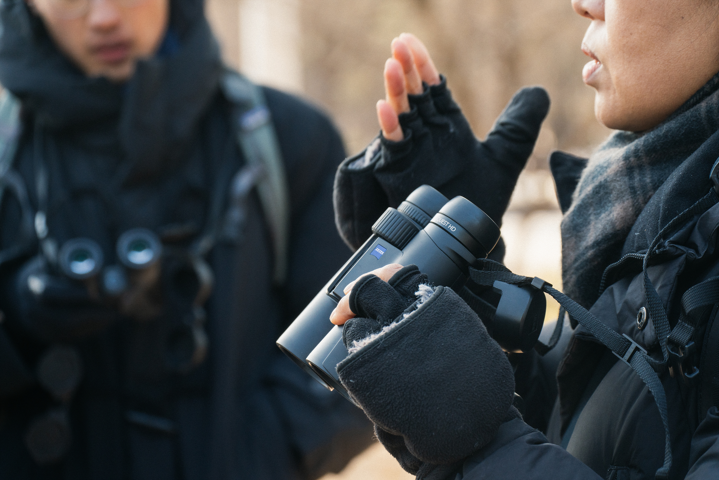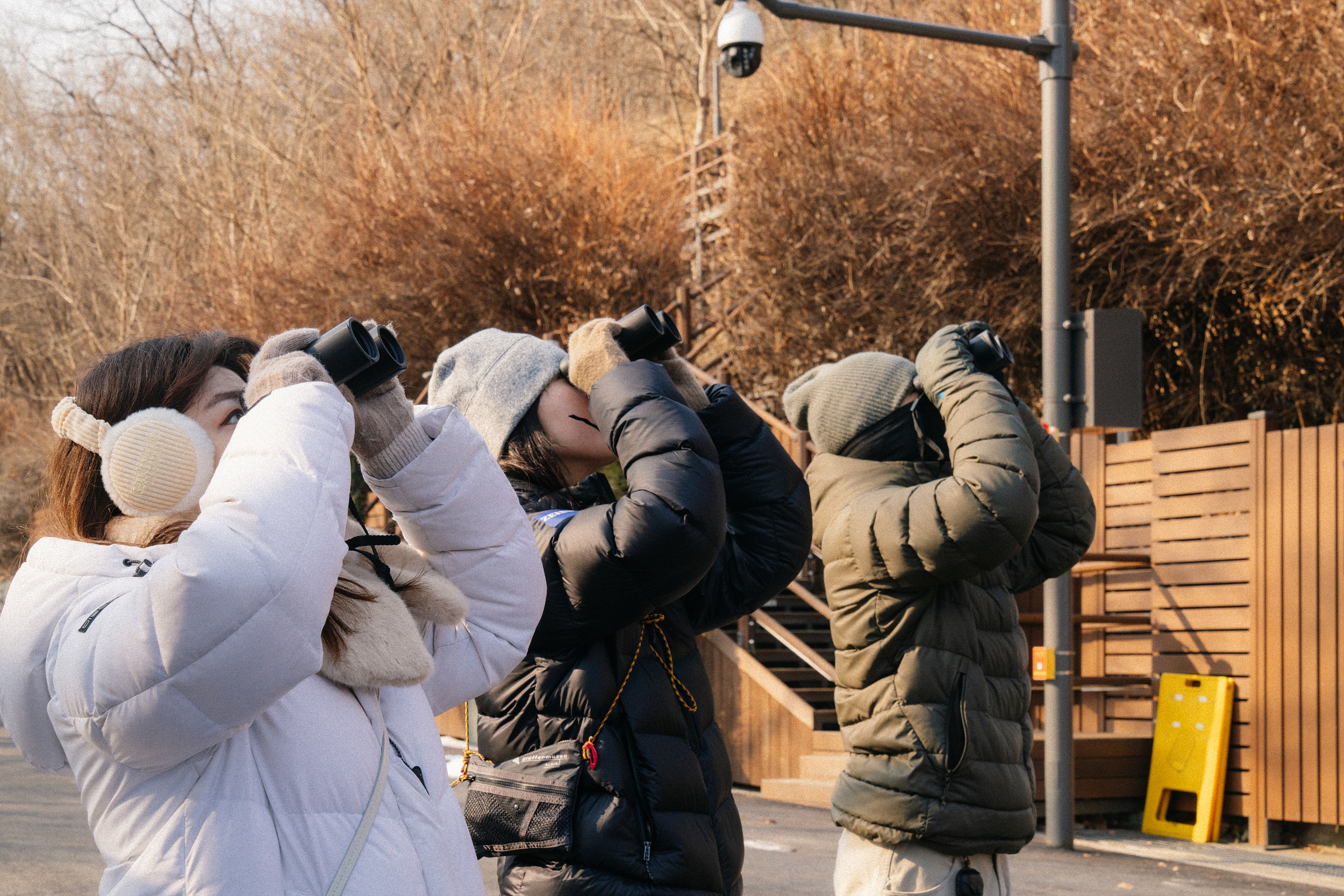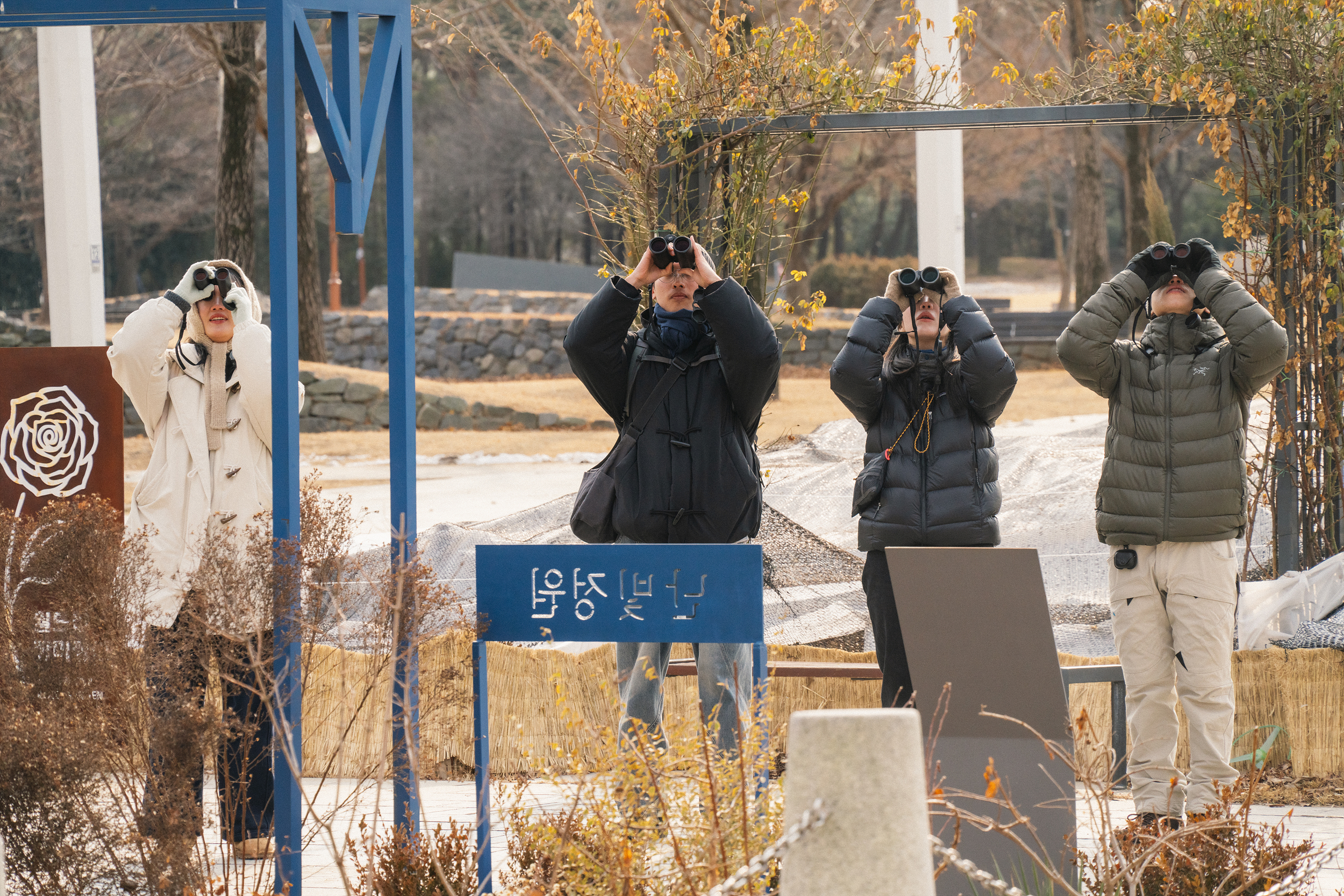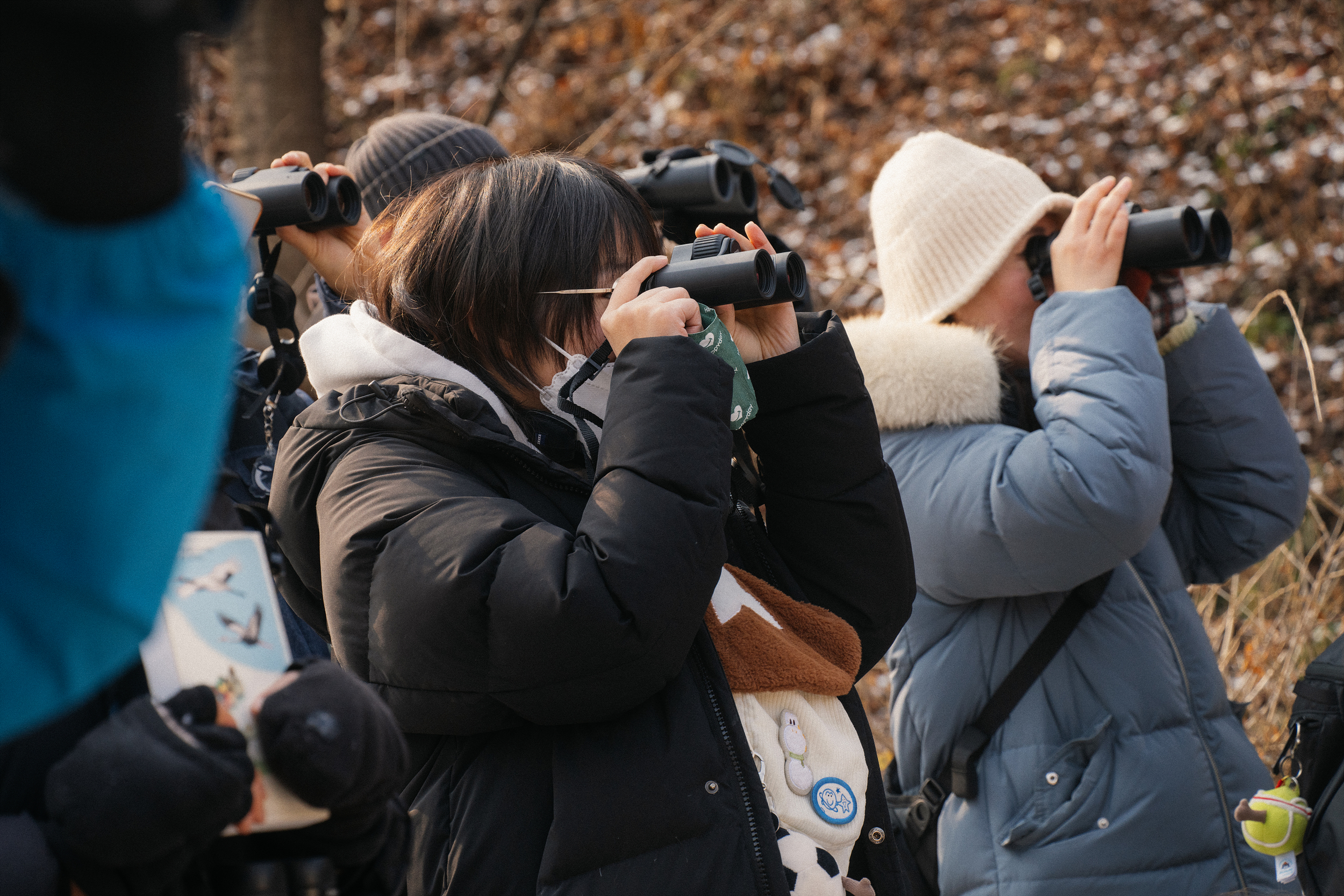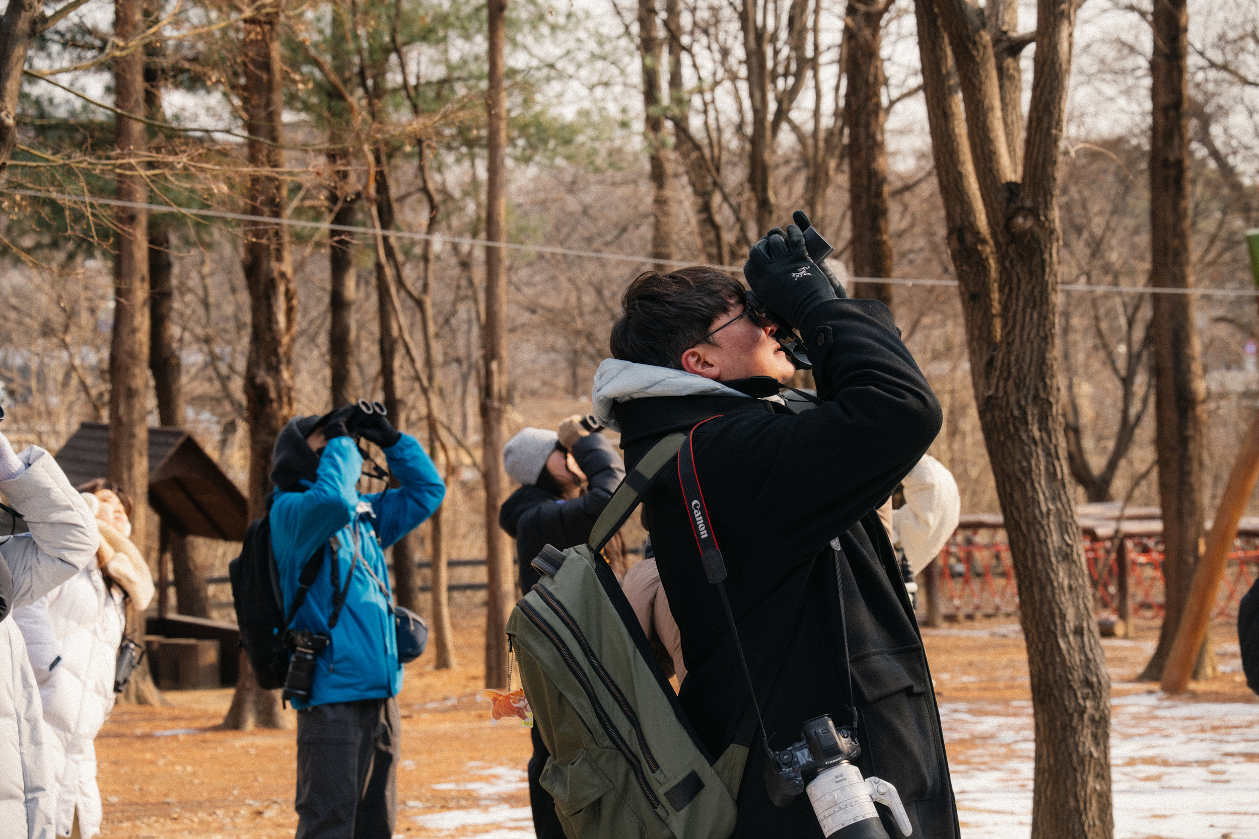탐조를 하러 마음 먹고 나온 터라 희미하게 들려오는 새 소리에도 어디서 들리는 건지, 혹시 새가 있는 건 아닐까 하면서 보다가 누군가 '저기 있다' 하면 쌍안경을 들고 이리저리 찾아보게 됩니다. 이렇게 몇 번 사용하면 자연스럽게 새를 발견하는 감각도 올라가고, 쌍안경을 능숙하게 사용하게 되면서 점점 탐조에 빠져들게 됩니다.