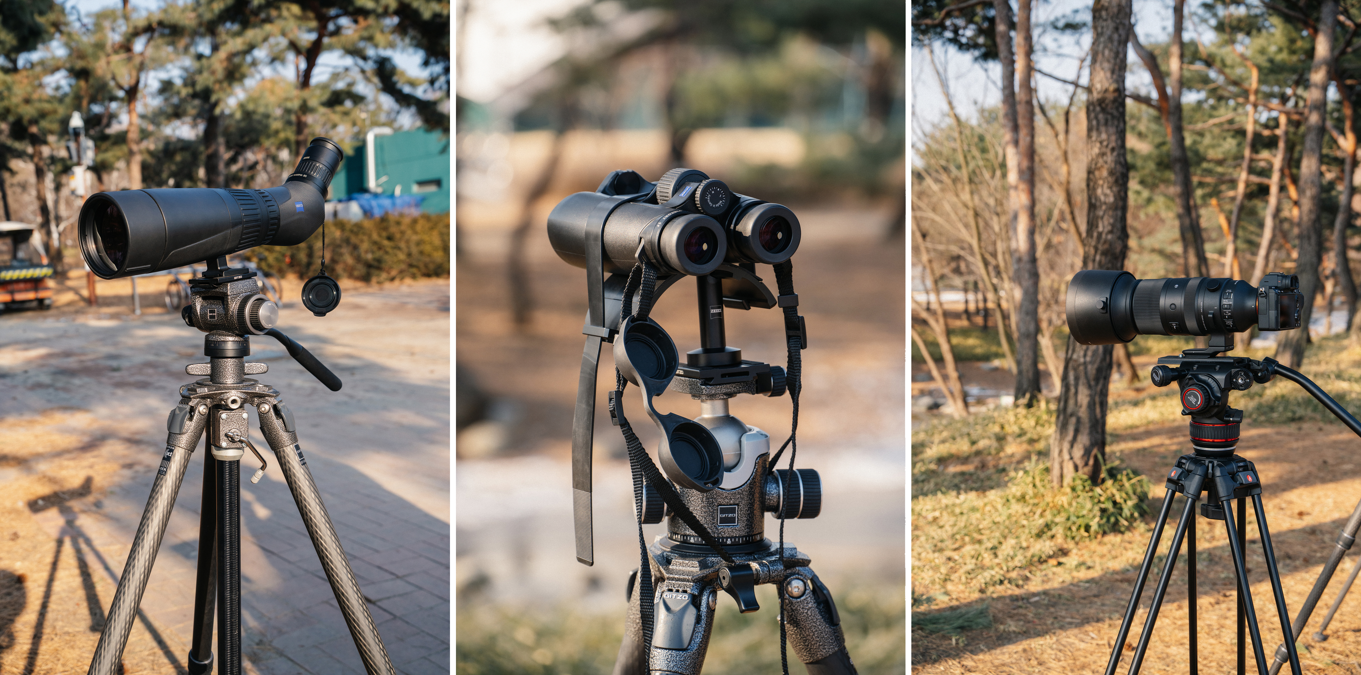 대여 제품 외에도 자이스의 Harpia 85 스코프, Binofix Tripod Adapter를 통해서 삼각대에 쌍안경을 거치하고, 기록으로 많이 사용하는 시그마 60-600mm 렌즈도 준비했습니다.