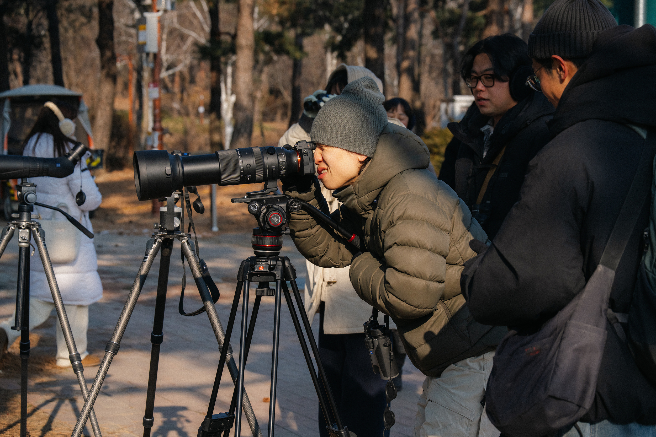 쌍안경 외에도 외부에 삼각대를 통해서 시야각과 광학적으로 최고의 성능을 보여 주는 스코프인 ZEISS Harpia 85, 아까 설명해 드렸던 Victory SF, 그리고 탐조에서 빠질 수 없는 사진 촬영을 위한 SIGMA 60-600mm F4-6.3 DG DN OS | Sports 렌즈까지 폭넓게 준비했으니 장비에 대해서 몰랐던 분도 <새보러 가자>에 오면 됩니다.