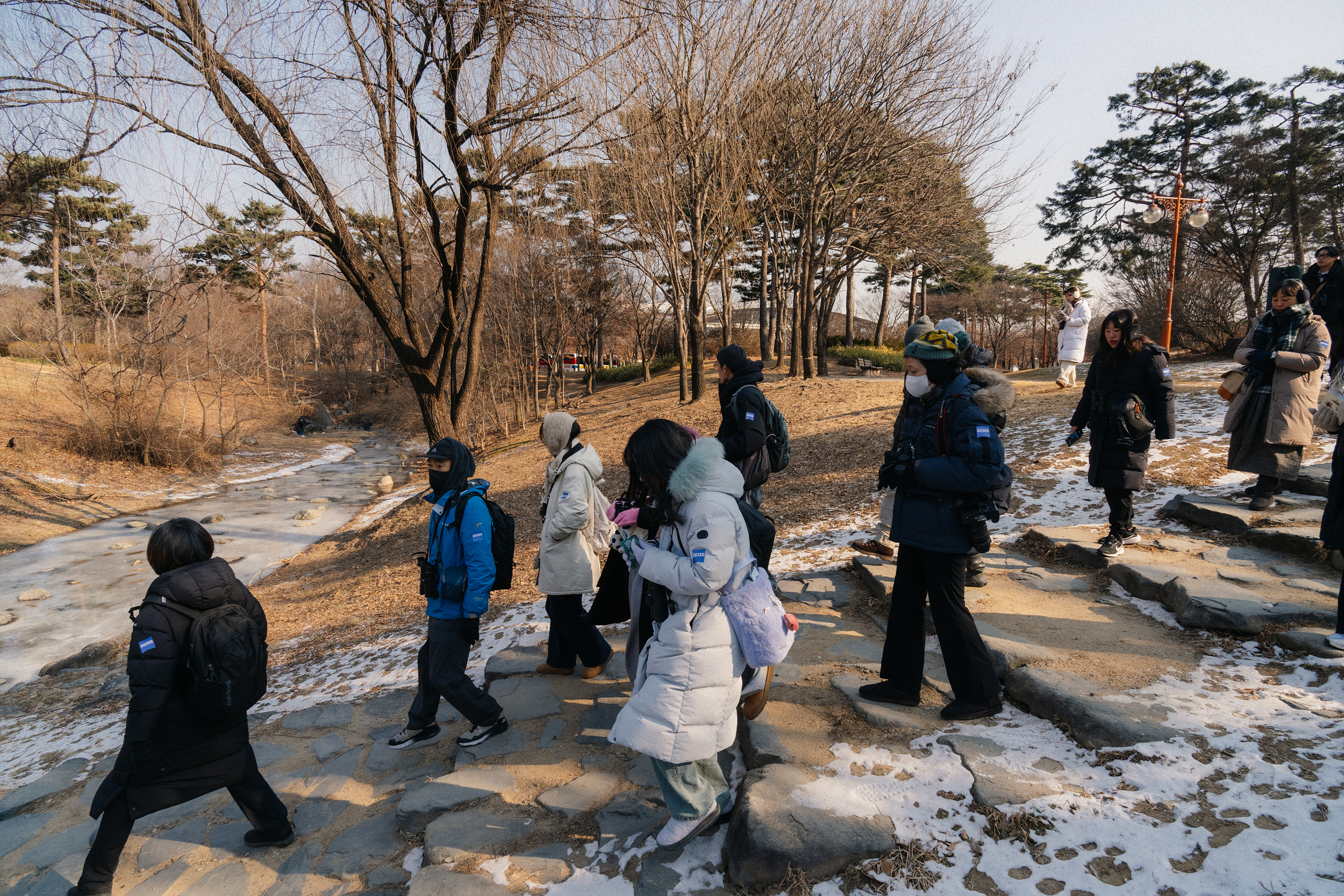 이렇게 기본적인 탐조 에티켓, 탐조 예절에 대해서 배우고 나서 대여한 쌍안경을 간단하게 배워보는 시간을 가졌습니다. 능숙하게 다루시는 분도 있지만 처음 써보는 분들도 꽤 있어서 기본적으로 쌍안경으로 볼 때 눈 간격을 얼만큼 해야 잘 볼 수 있는지, 초점은 어떻게 맞추면 되는지 등을 배웠습니다. 이렇게 배우고 나면 탐조하러 출발!