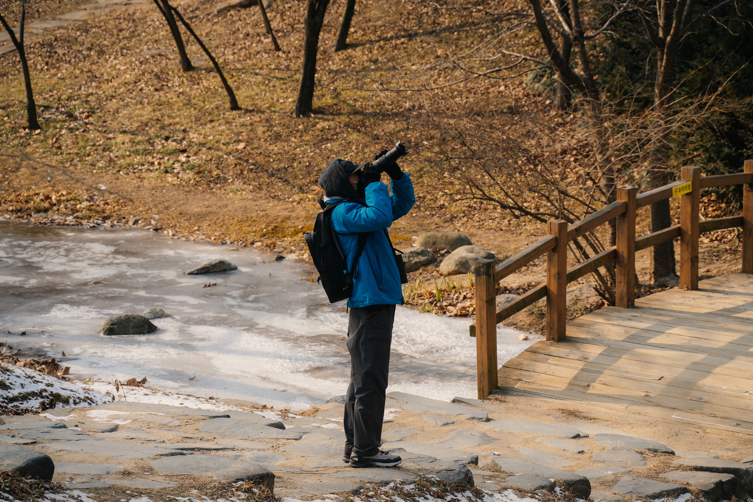 작은 냇가가 있어서 녹으면 새들이 물을 마시러 온다고 해요