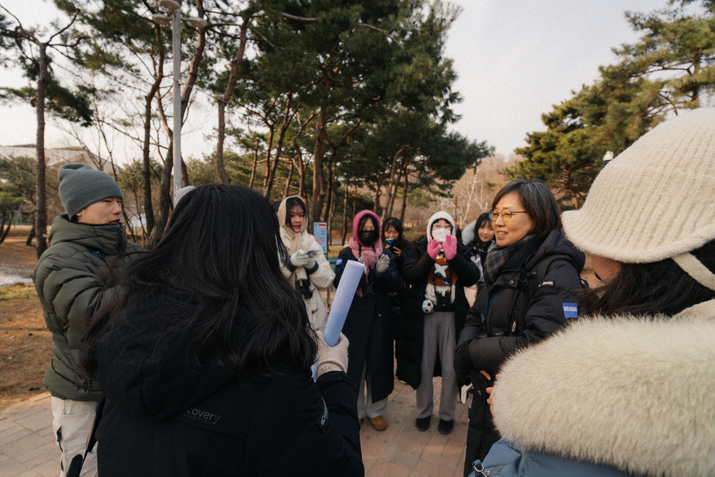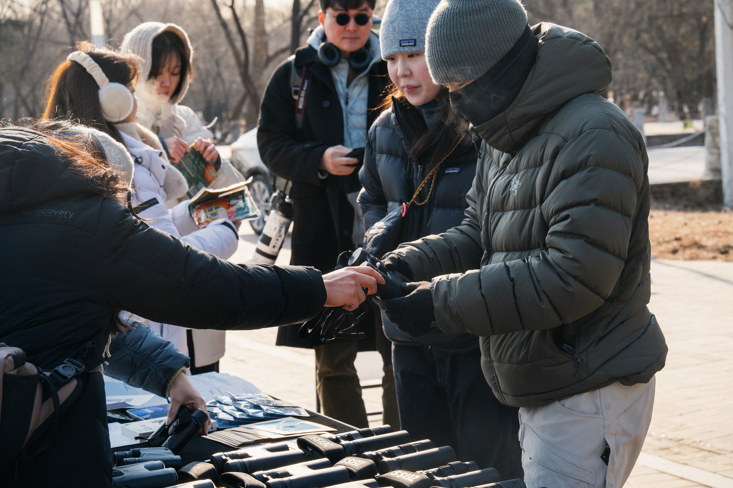 이 날은 날씨가 상당히 추워서 참가자를 위해 핫팩을 준비하면서 키링과 탐조 에티켓이 담긴 작은 책자도 준비해서 장비를 대여해 드리면서 함께 나눠 드렸습니다. 장비를 모두 대여한 후에 새보러 가자가 시작했습니다. 새를 사랑하며 관찰하고 기록하는 시민과학자 모임인 '서울의 새' 이진아 대표님께서 오늘도 즐거운 탐조 활동을 위해 진행해 주고 계십니다. 처음부터 저희와 함께하고 있는데 정말 처음인 분들도 탐조에 관심을 가질 수 있게 진입장벽을 많이 낮춰주시는 역할을 해주고 있습니다.