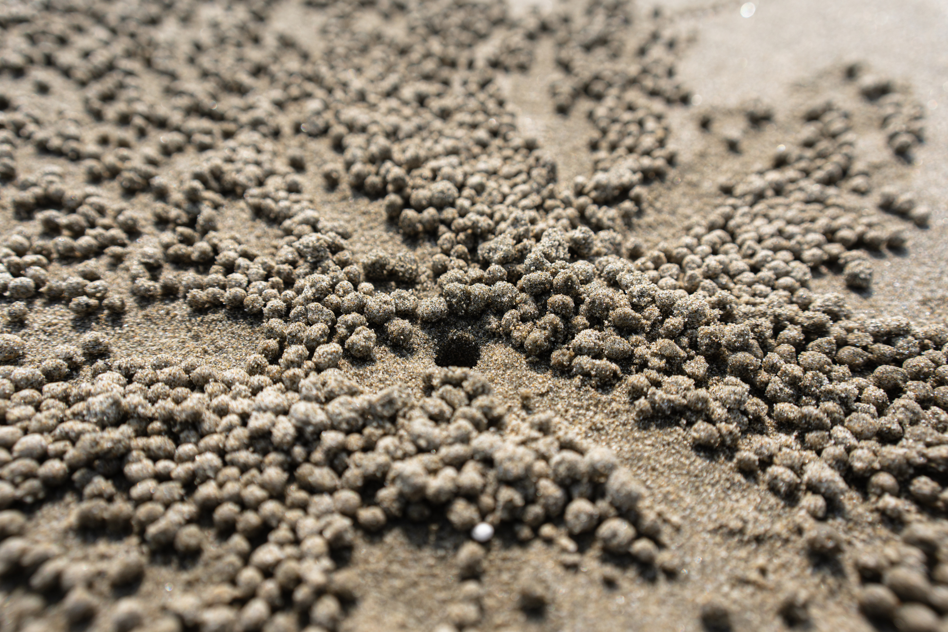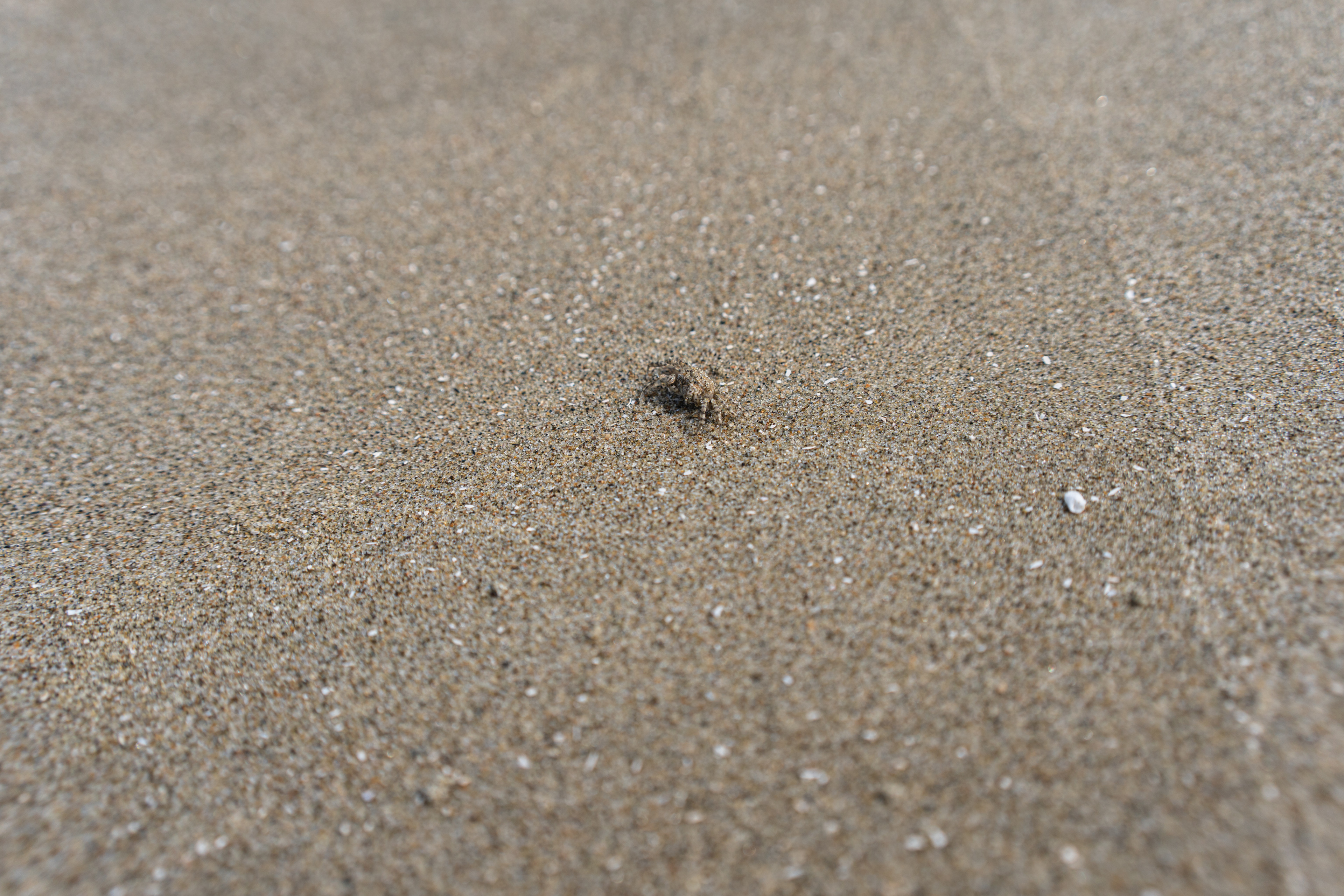 해변을 벗어나던 중, 발밑에 손톱만큼 작은 게가 도망가다 말고 멈춰 서있는 것이 보였다. 나중에 크게 확대해 볼 요량으로 찍어왔는데, 200% 정도 확대하여 크롭한 것이 아래의 이미지이다. 눈으로는 보이지도 않던 것이 이미지상에서는 제법 선명하다.