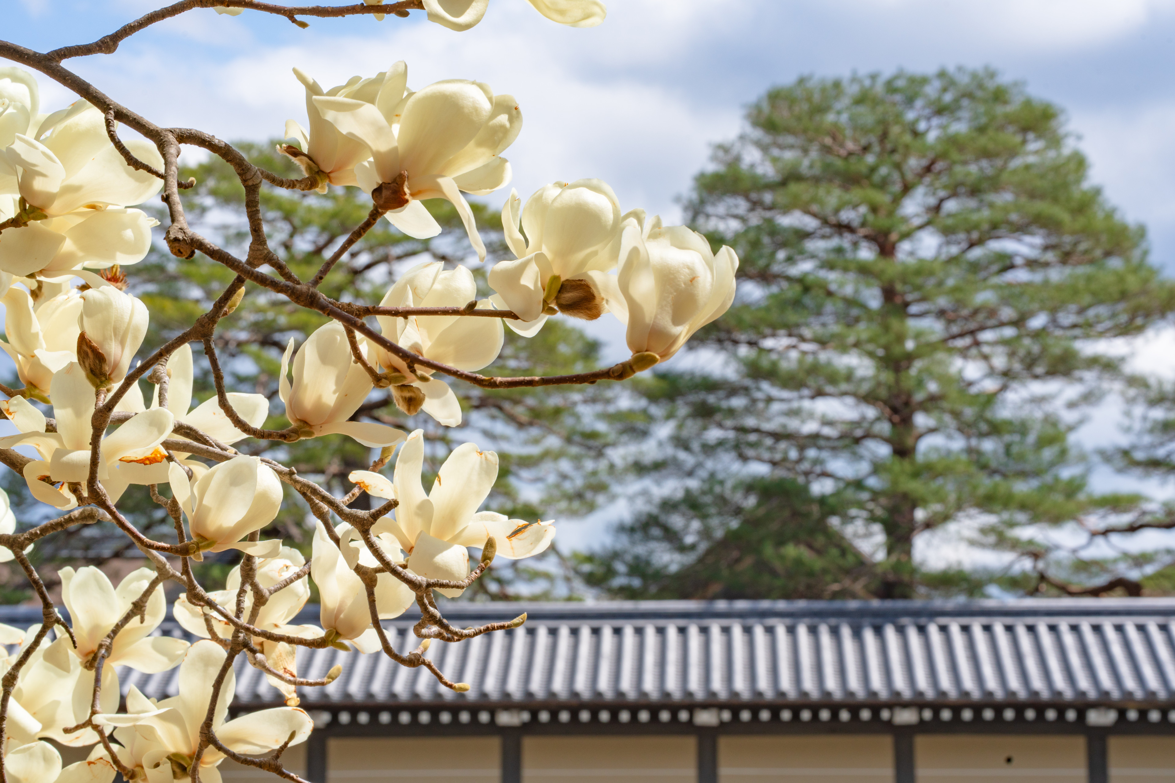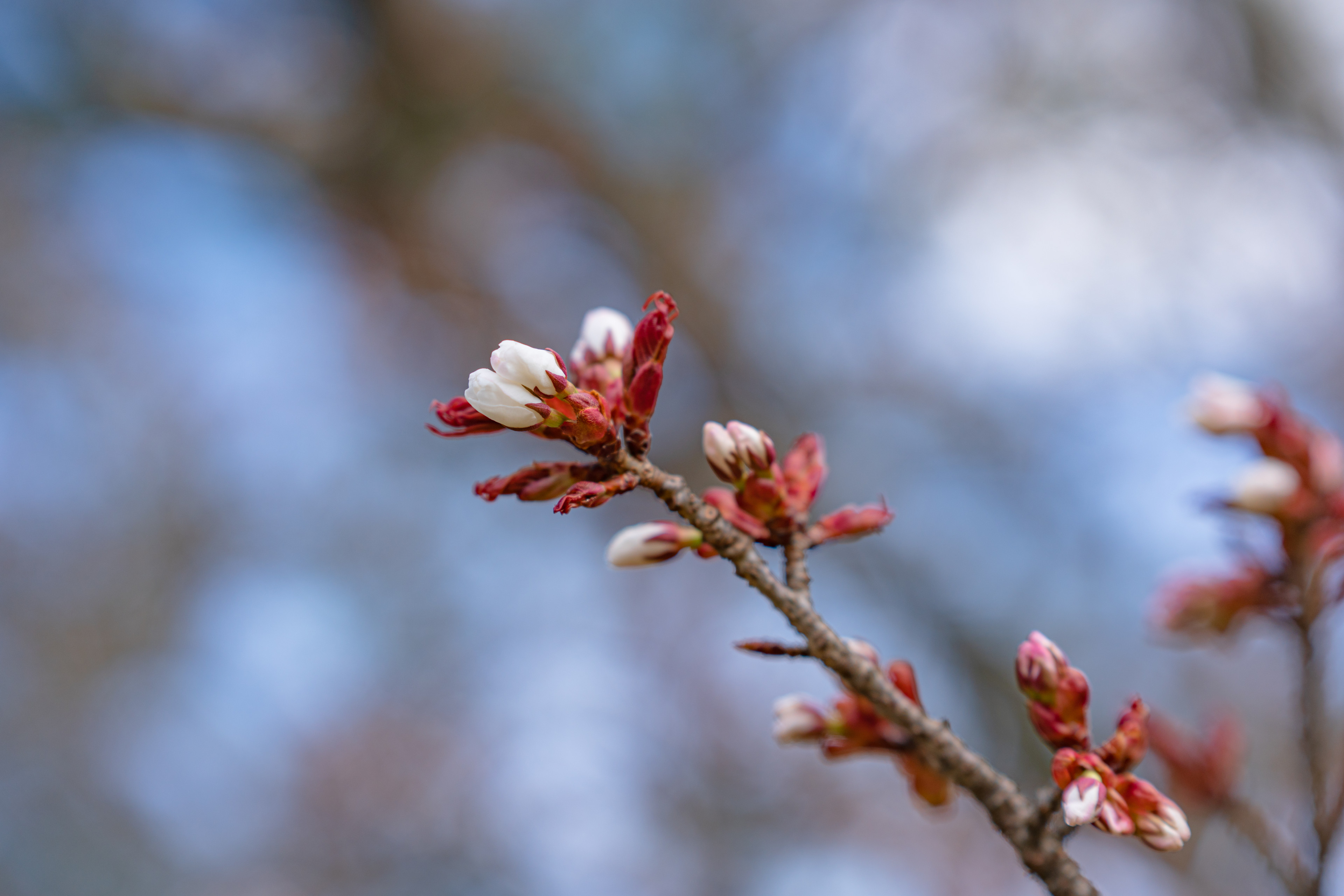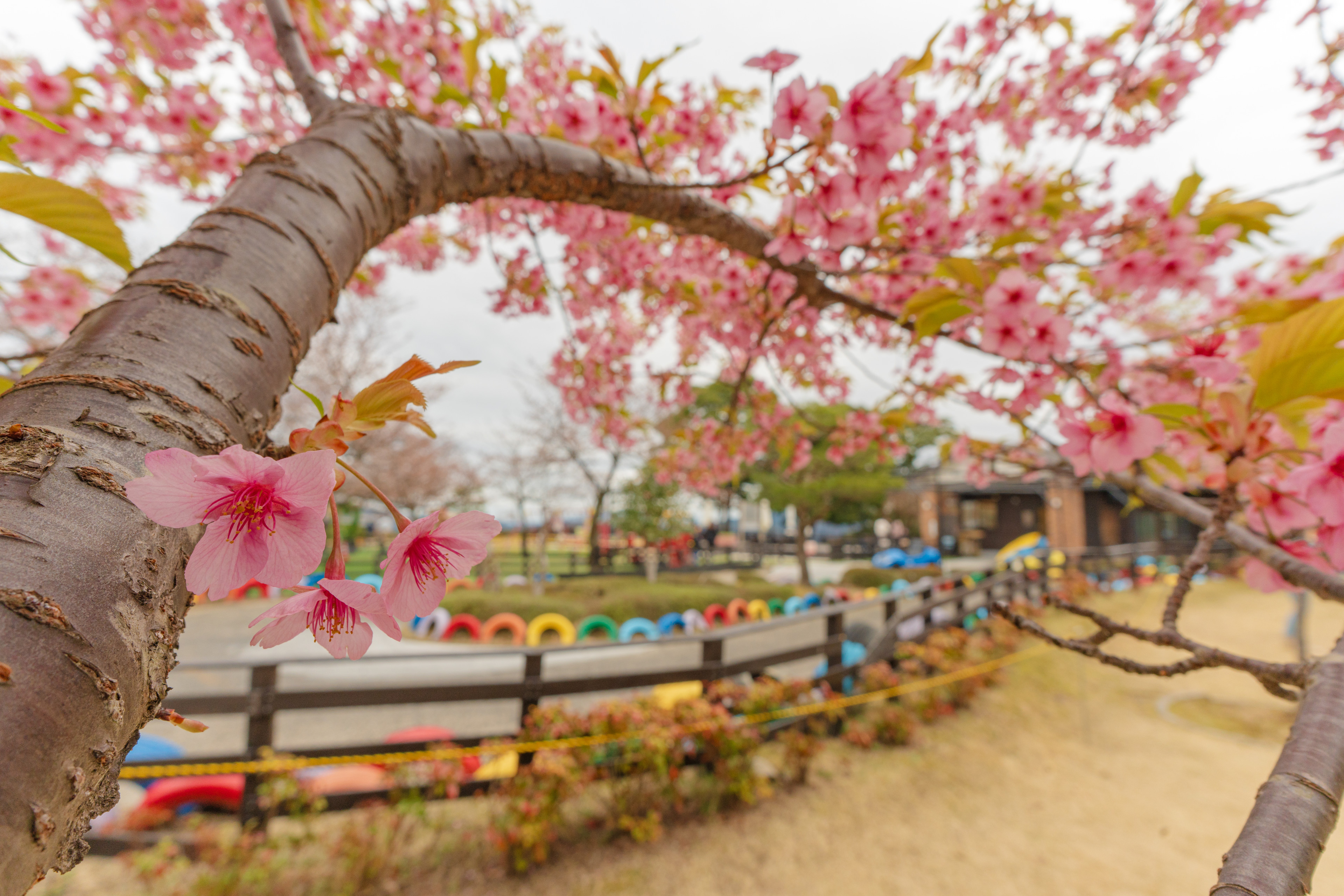 막 피기 시작한 교엔의 벚꽃들. 90mm는 보케가 아름다운 렌즈다.