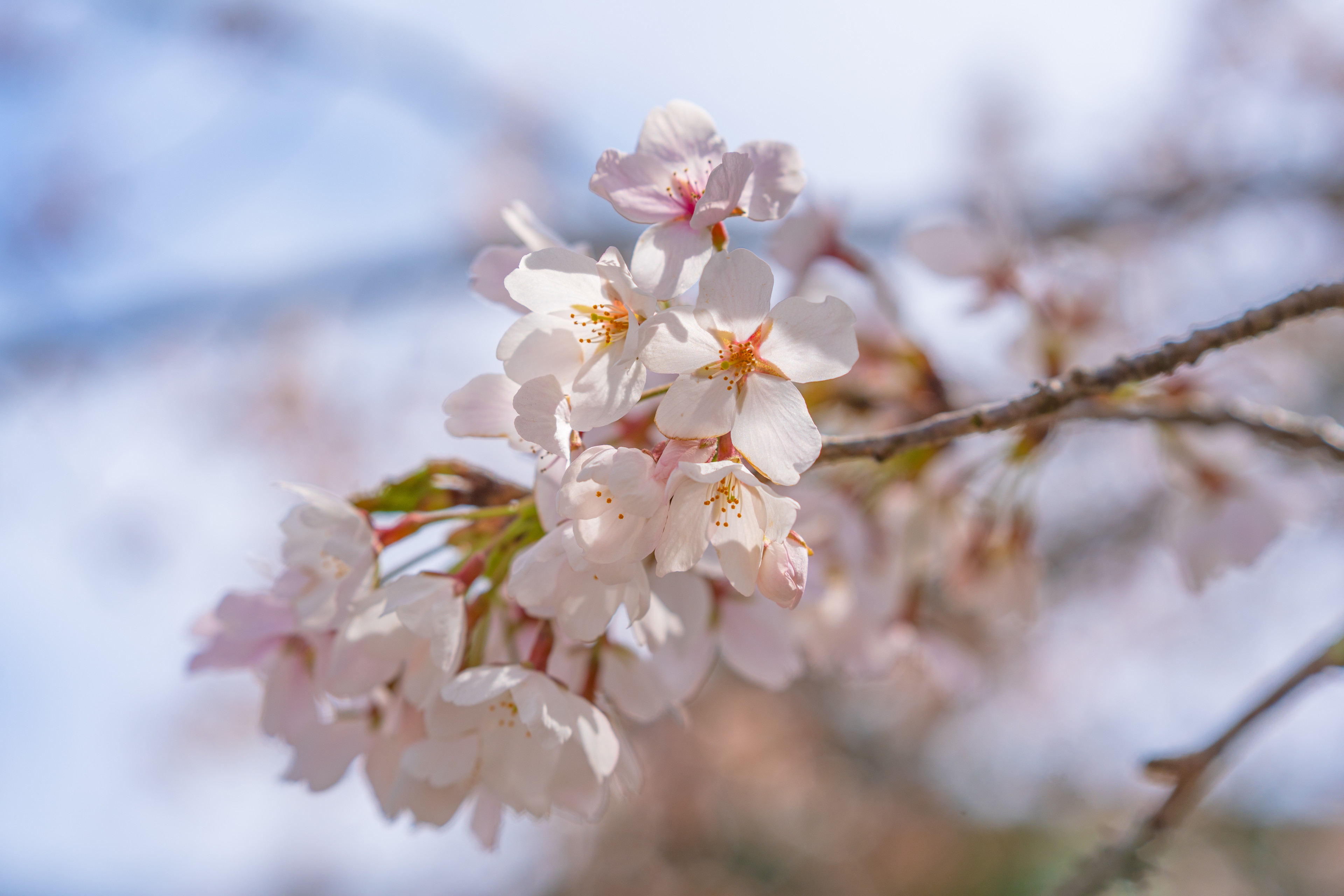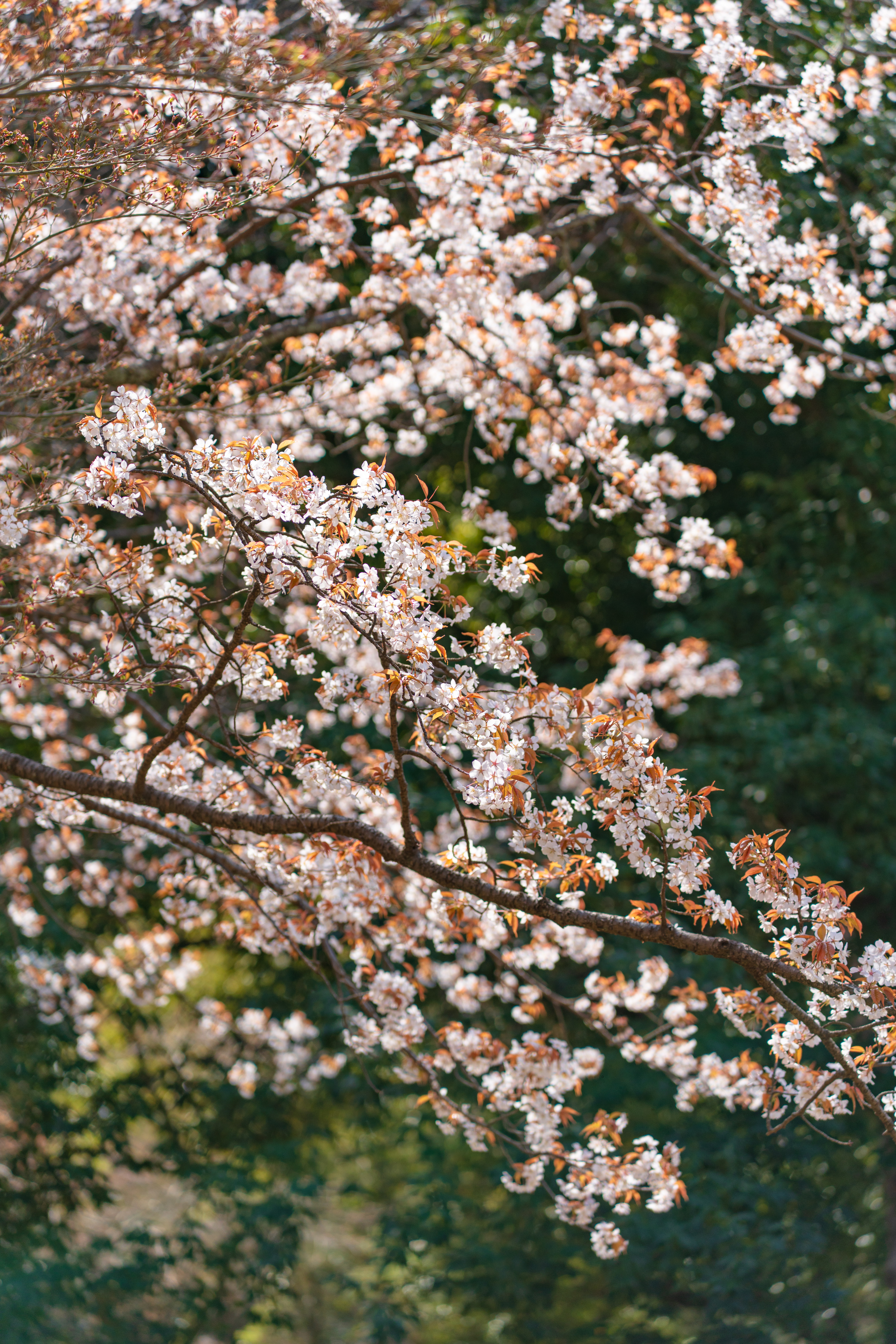 나무의 수령은 알지 못하지만 몹시 키가 큰 수양벚나무 가지가 하늘을 덮고 있었다. 아래에서 위로 사진을 찍어서 거대한 벚꽃나무가 태양을 등진 채 담겼다. 벚꽃잎이 역광을 받아 회색으로 보일까 걱정하였는데 암부를 끌어올렸을 때도 본연의 색이 잘 구현된 것을 확인할 수 있다. 길게 뻗어나간 수양벚꽃의 가지로 흐르듯 만개한 벚꽃에서 동양적인 아름다움이 느껴졌다.