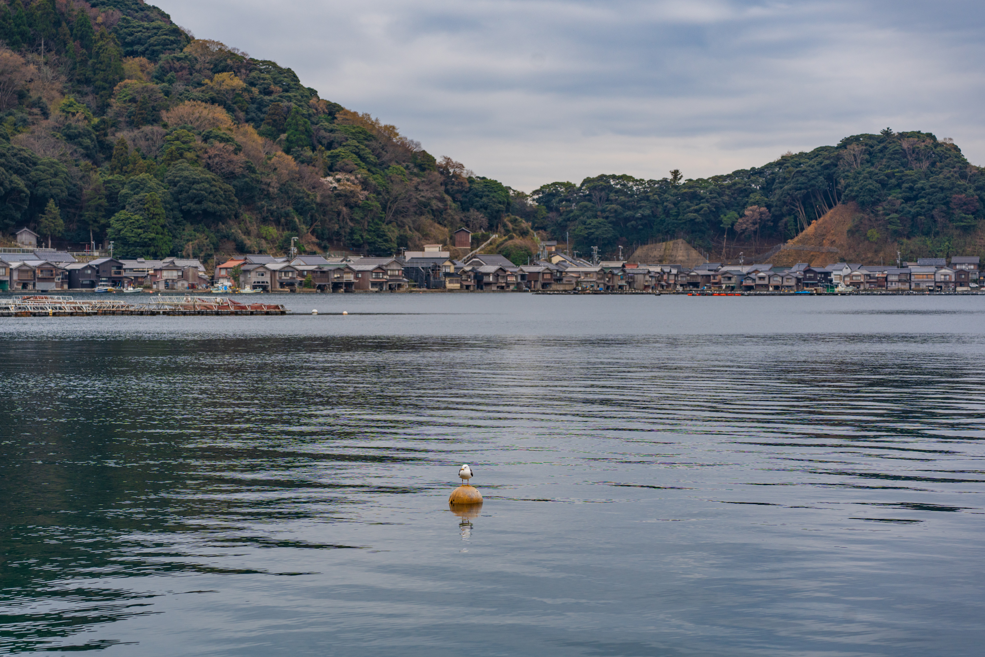 하늘 위로 펼쳐지는 일몰을 보려 유람선 운영 시간에 맞춰 왔는데 날씨는 여행자의 편이 아니었다. 그럼에도 일본 교외 지역 특유의 분위기와 바닥까지 보이는 맑은 청록빛의 바닷물이 마음을 고요하게 만드는 곳이었다.