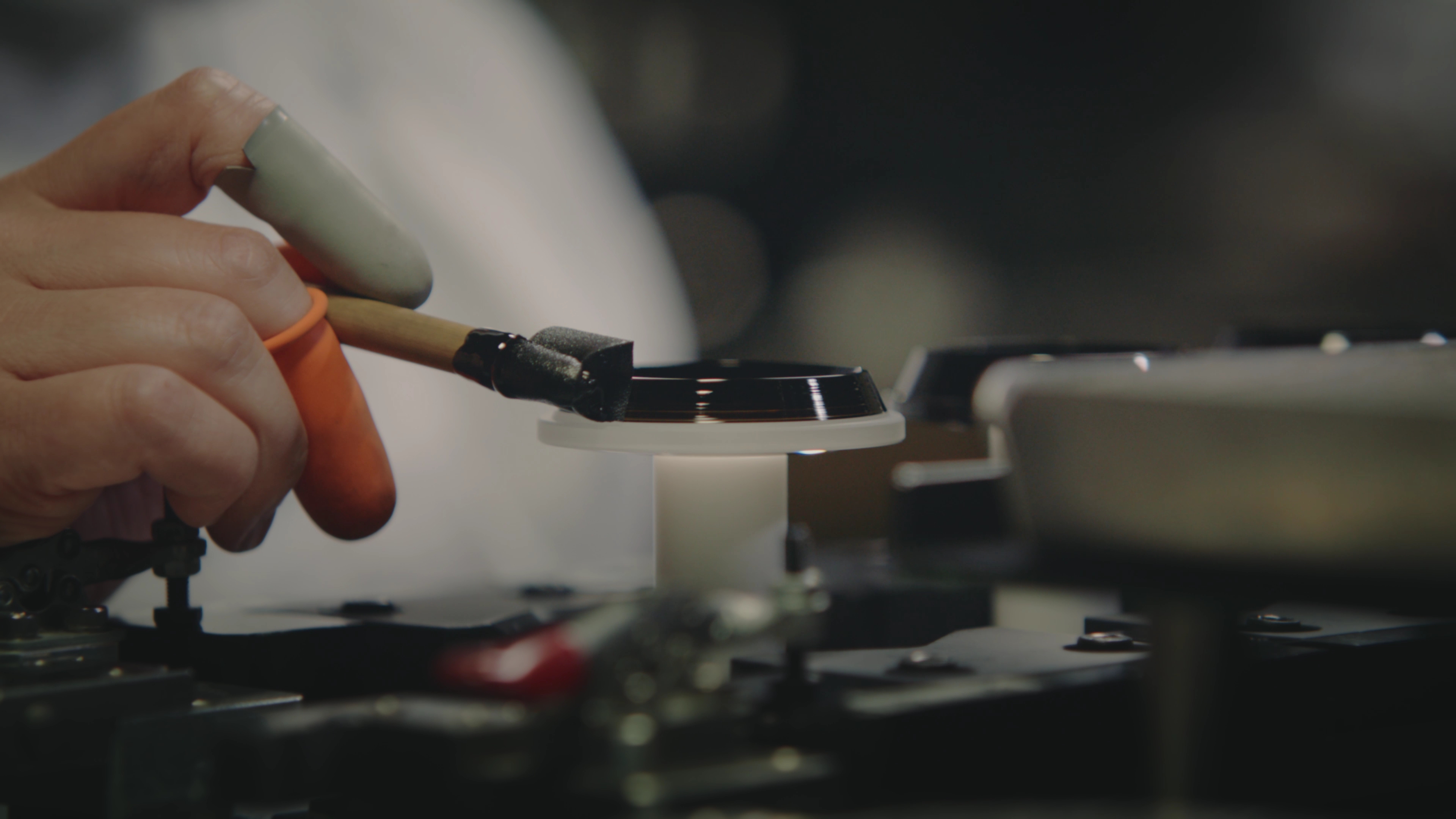 아이즈 공장에는 수많은 기계가 작동하고 있고, 자동화 시스템도 도입되었지만 SIGMA는 수작업 공정을 포기하지 않고 있다. 모든 공정에 수작업이 적용되는 것은 아니나 수작업이 꼭 필요한 파트에선 숙련자들의 손기술이 중요하다. 컬러 인레이 팀의 기술자들은 개별적으로 인레이를 도색하고 이는 시간이 지나도 글자가 마모되는 것을 방지한다. 고스트와 플레어를 최소화하는 특수 블랙 코팅도 숙련된 기술자들의 손 끝에서 완성된다.* 로봇의 손이 닿을 수 없는 이 기술은 섬세함과 집요함을 요구하기 때문에 인력이 중요한 것이다.