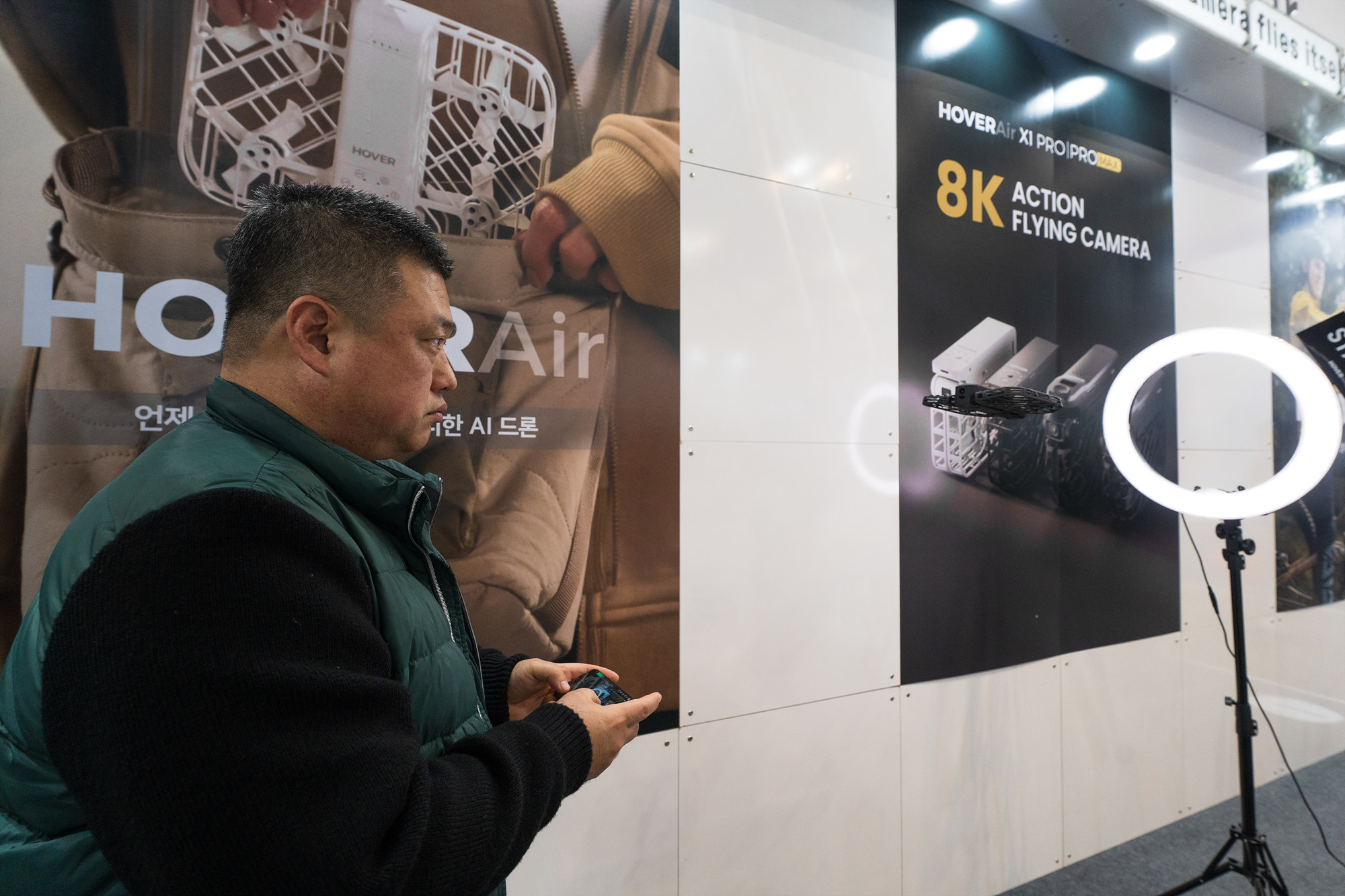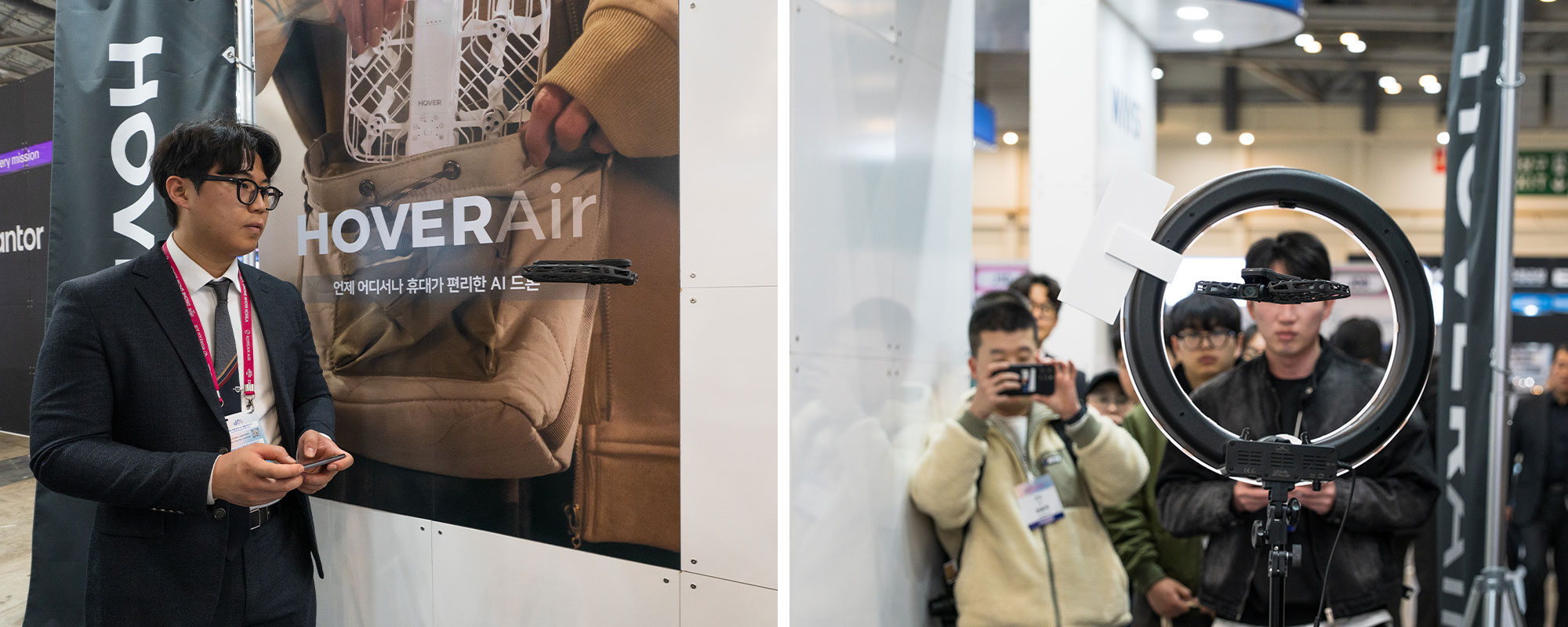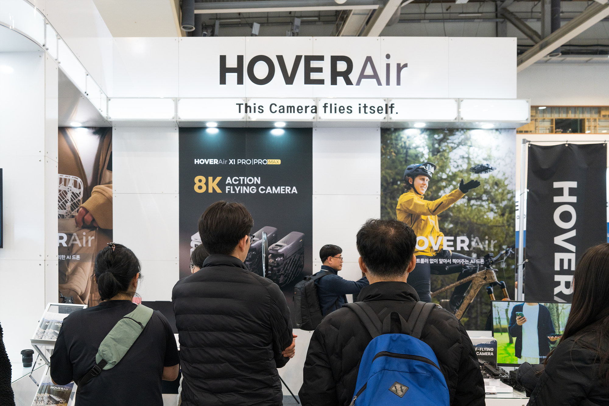 현장에서 진행된 호버에어의 팔로우 모드 시연은 많은 방문객들의 발걸음을 멈추게 했습니다. 별다른 수동 조작 없이 움직임을 인식하고 자연스럽게 따라오는 모습을 보며, 지나가던 방문객들도 하나둘씩 속도를 늦추고 호버에어에 시선을 빼앗겼죠.