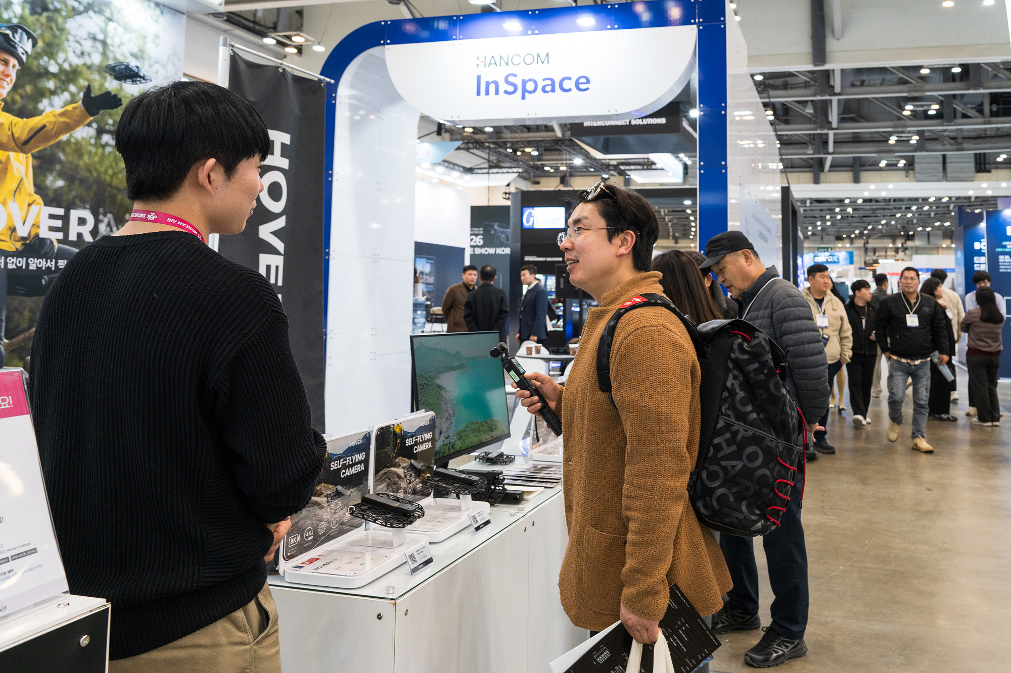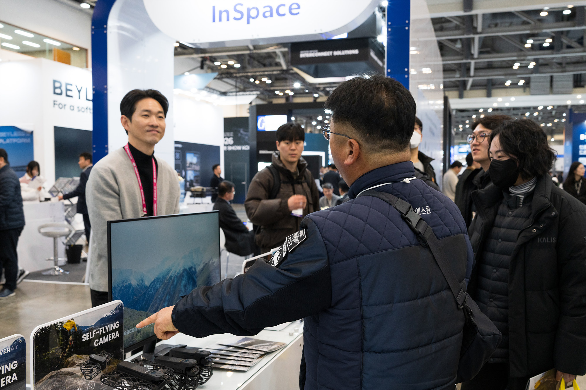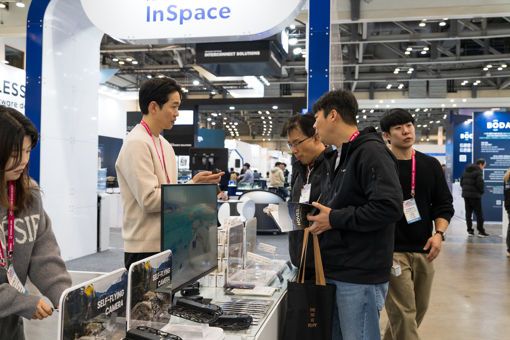 현장에서 진행된 호버에어의 팔로우 모드 시연은 많은 방문객들의 발걸음을 멈추게 했습니다. 별다른 수동 조작 없이 움직임을 인식하고 자연스럽게 따라오는 모습을 보며, 지나가던 방문객들도 하나둘씩 속도를 늦추고 호버에어에 시선을 빼앗겼죠.