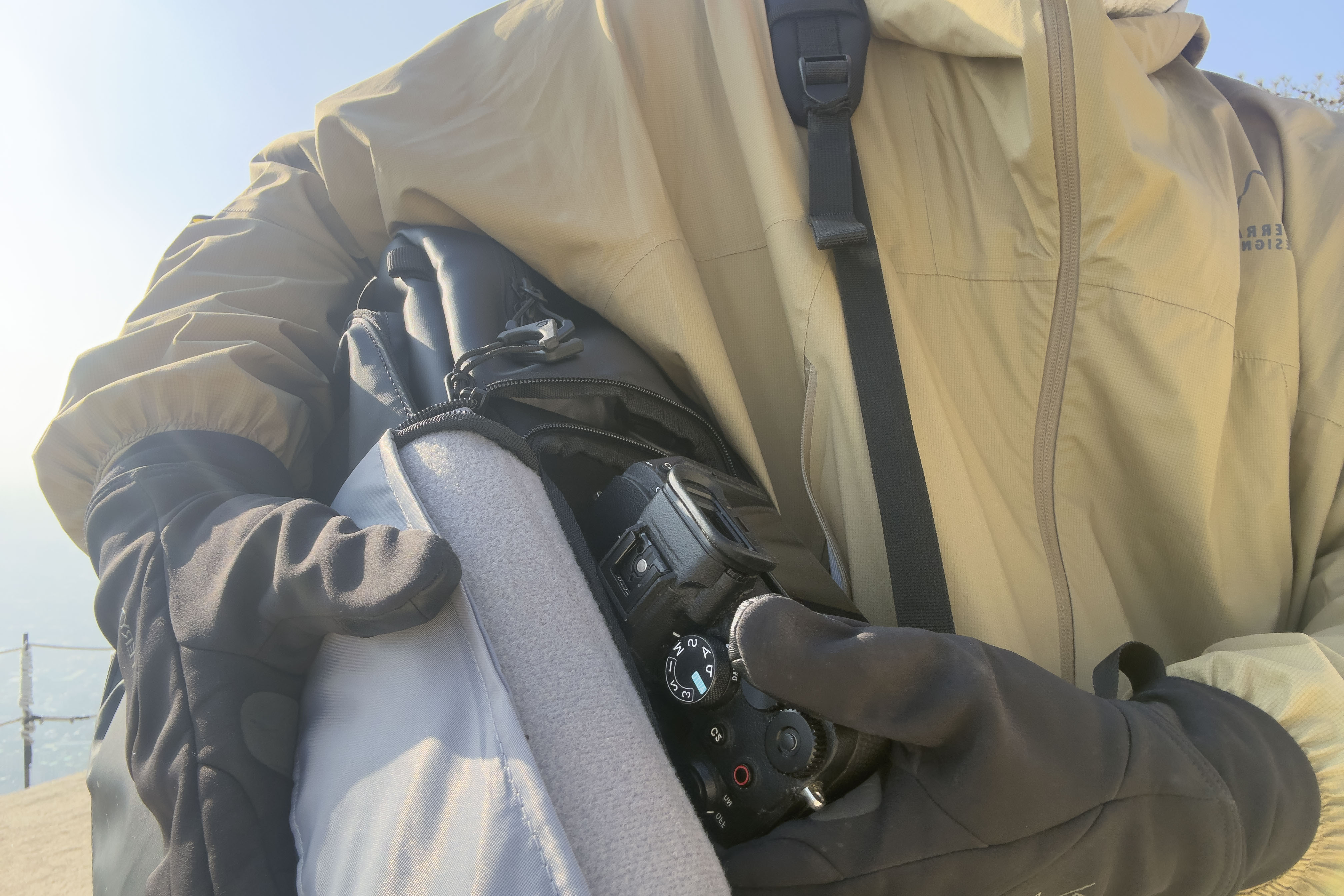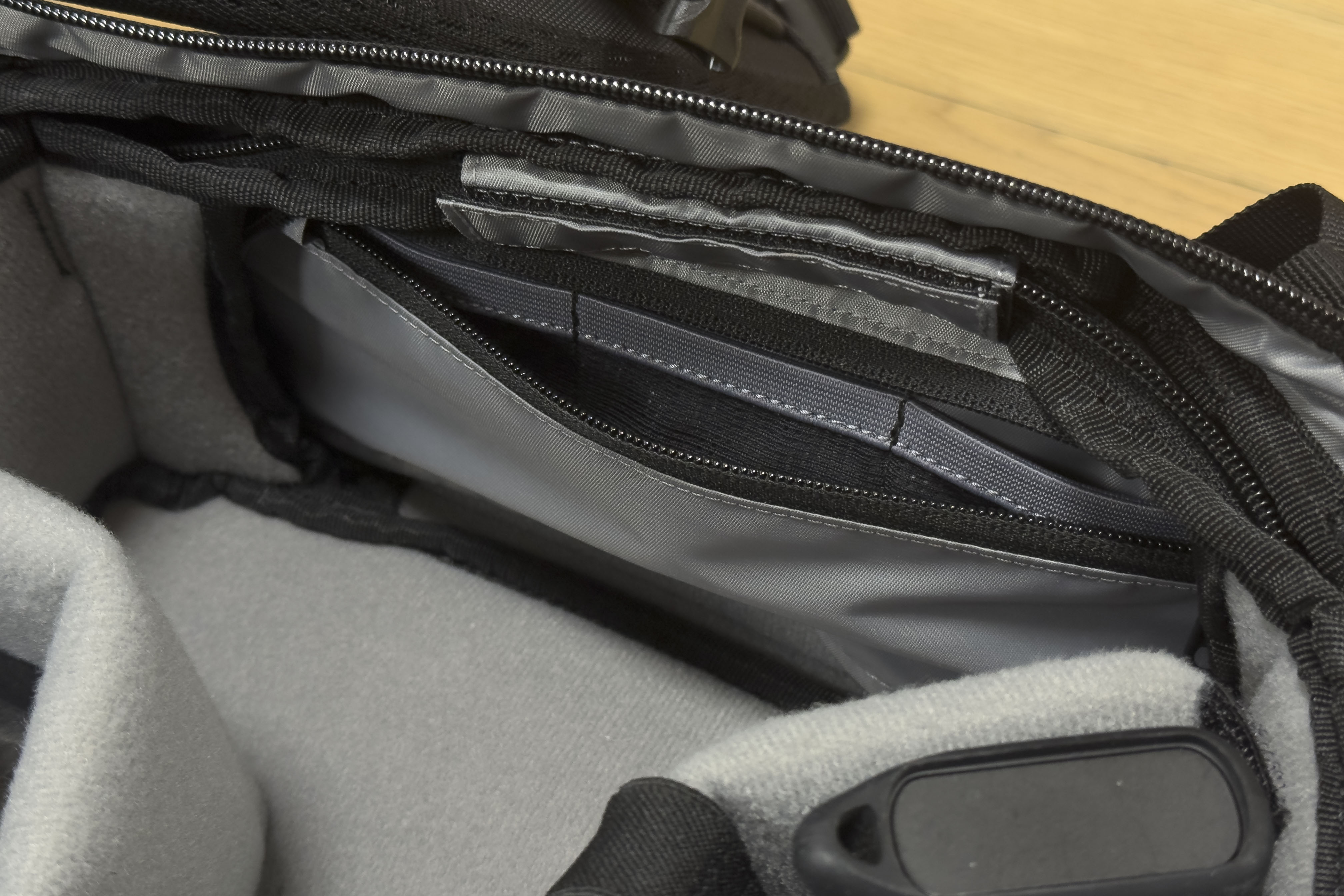 기존 PRVKE 모델과 비교했을 때 Pocket 버전은 전면 수납 포켓이 추가된 모델이에요. 작은 소지품이나 여권, 필름, 메모리카드를 따로 넣어두기 좋아요. 카메라 가방을 추천 할 때 이런 디테일이 실제 사용 만족도를 크게 좌우하기 때문에 촬영 중 작은 소품을 빠르게 꺼낼 수 있는 구조는 생각보다 중요해요.