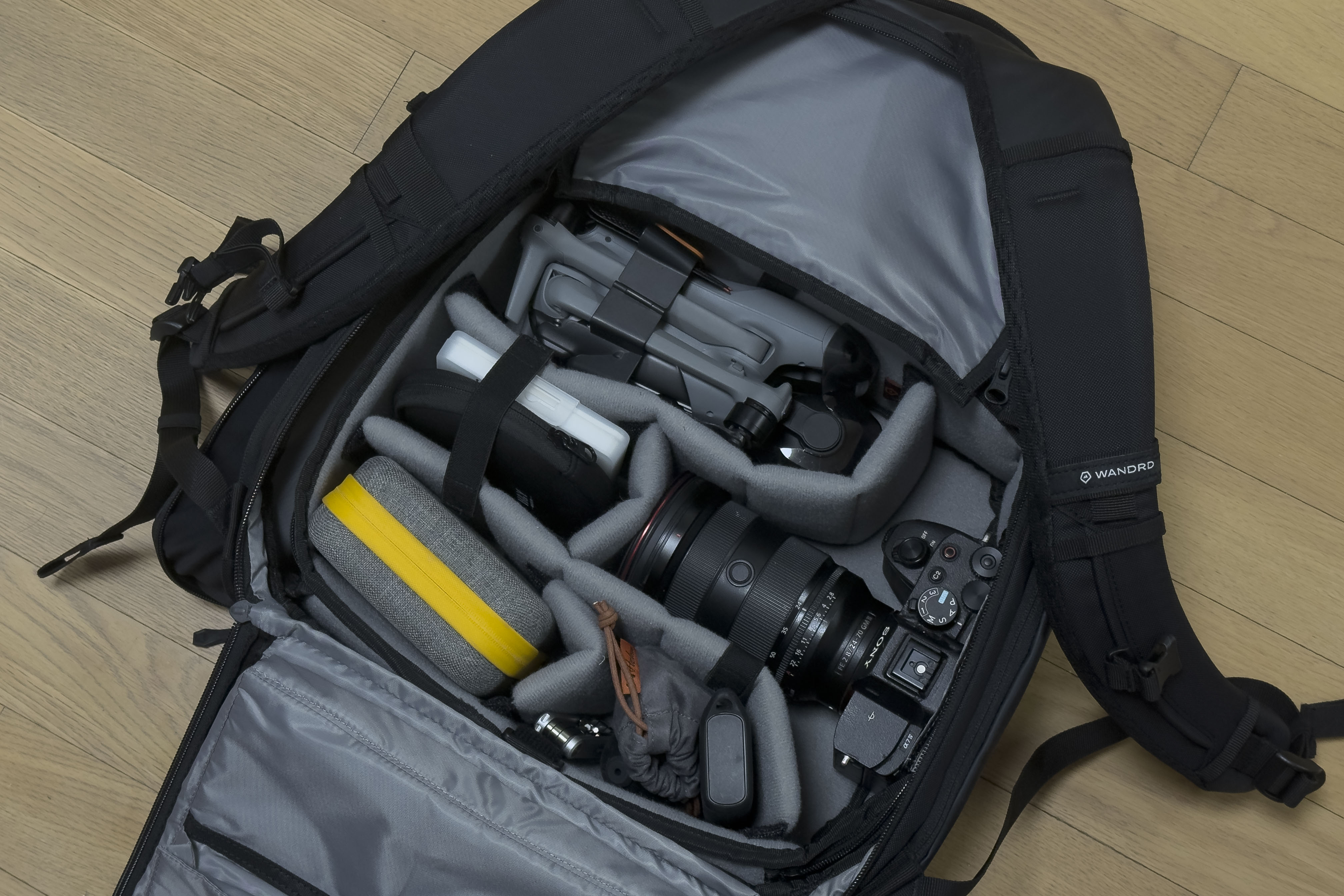 카메라 가방을 볼 때 가장 중요한 건 역시 수납력과 구조예요. 원더드 PRVKE 31 Pocket은 31L 용량으로, 미러리스 바디와 드론을 수납할 수 있어요.